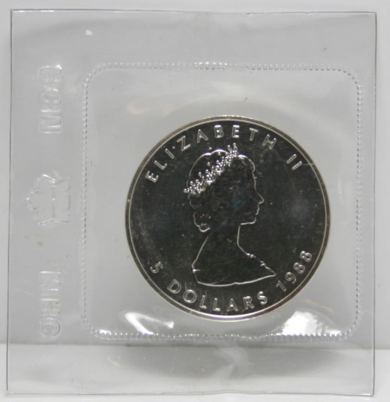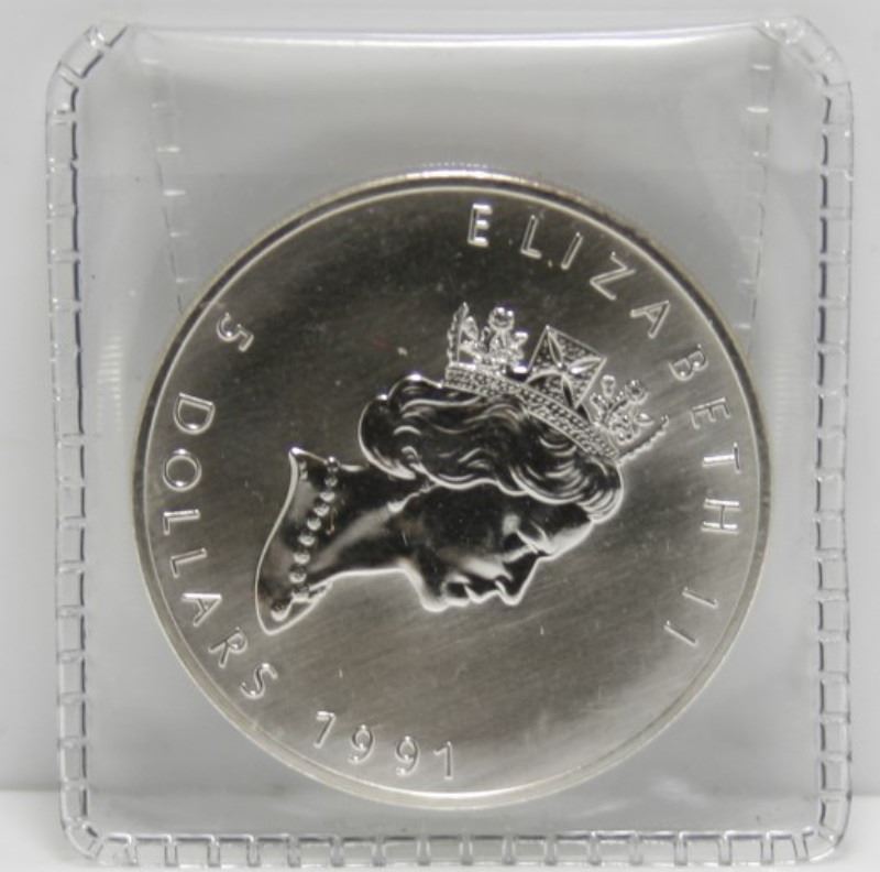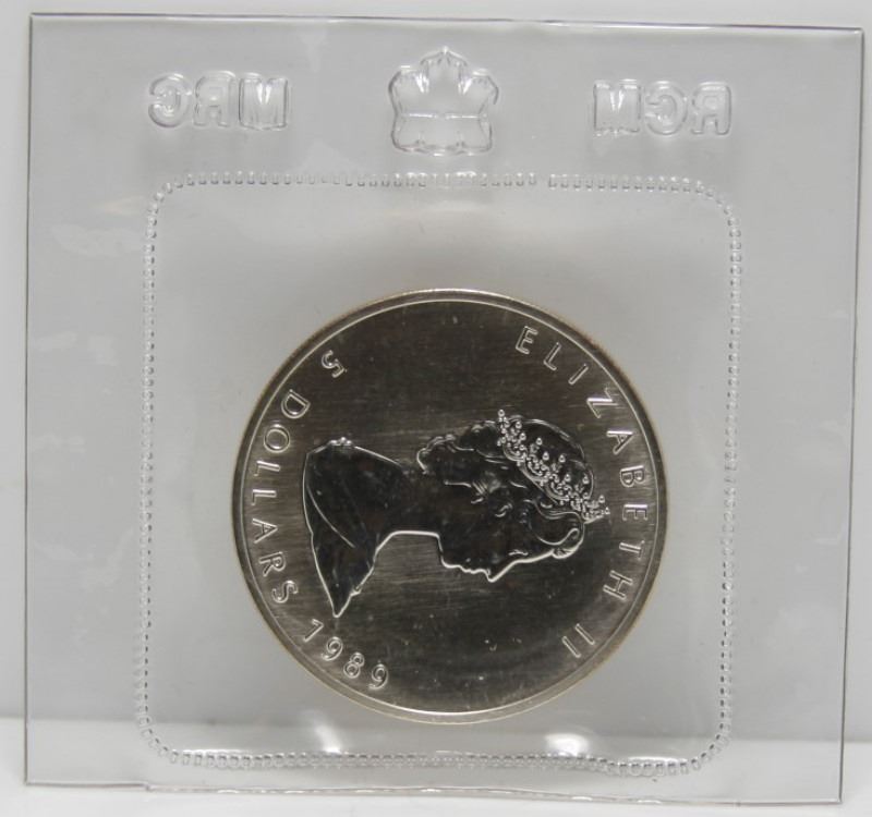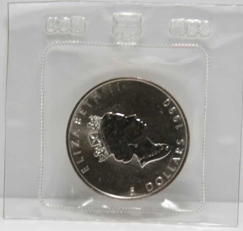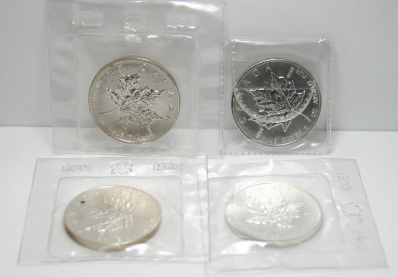 4 Canadian Fine Silver $5 Maple Leaf Bullion Coins - 1988, 1989 & 1990 In Original Plyo From RCM, Also 1991