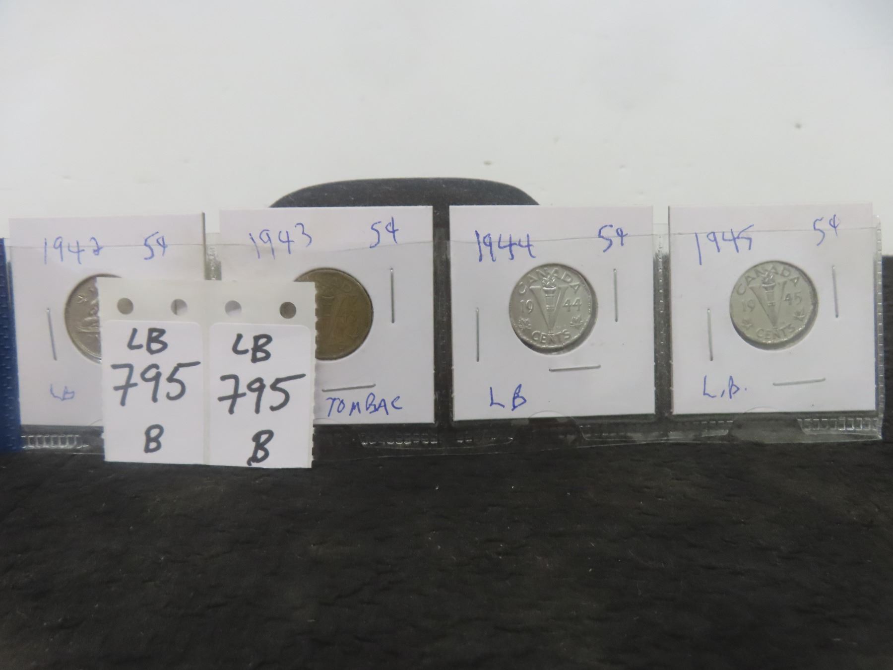 4 Canadian Nickels 1942,44,45,43 Tombac