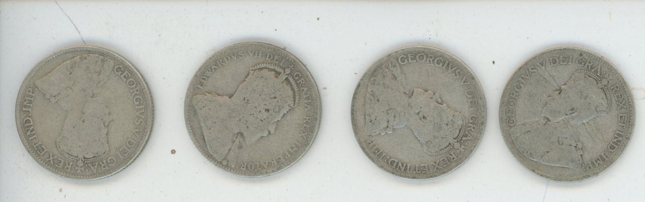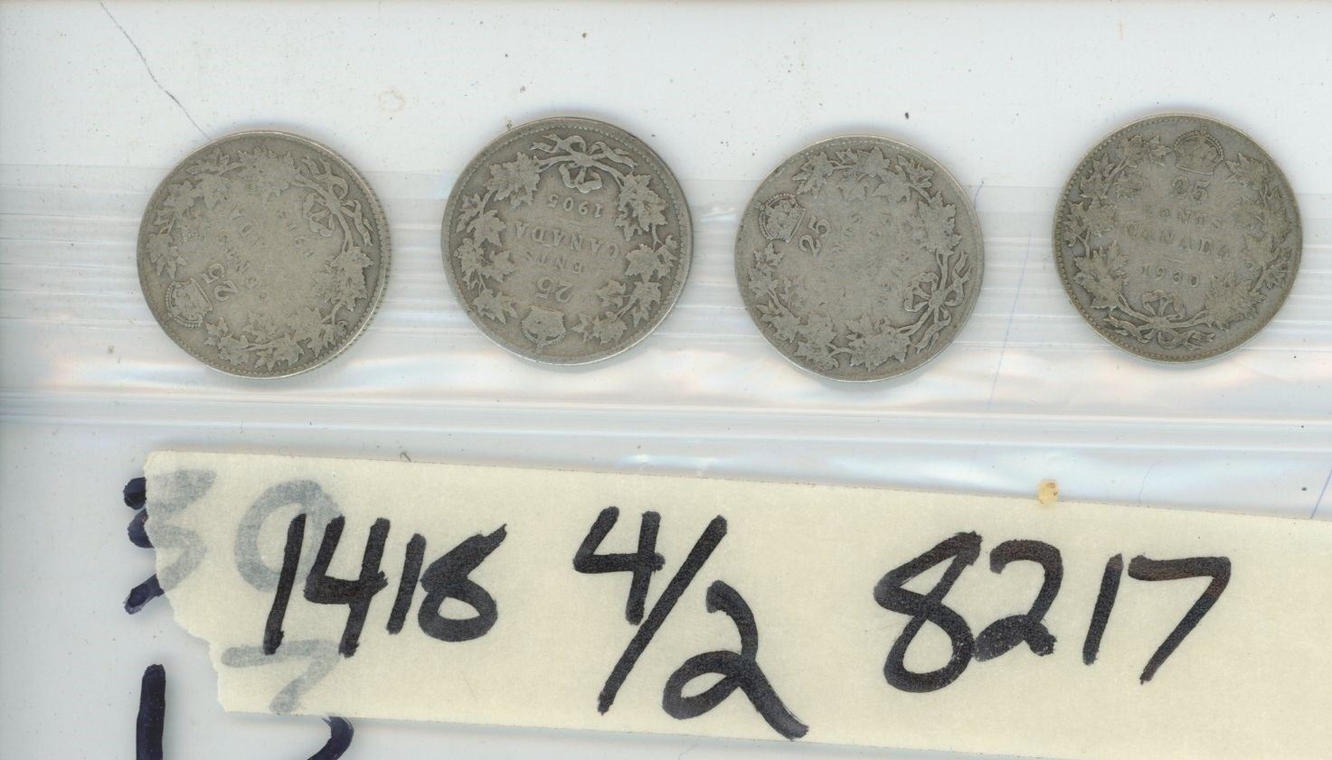 4 Canadian Quarters, 1913, 1930, 1905, 1918