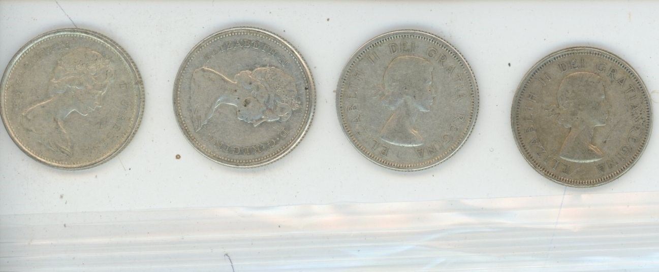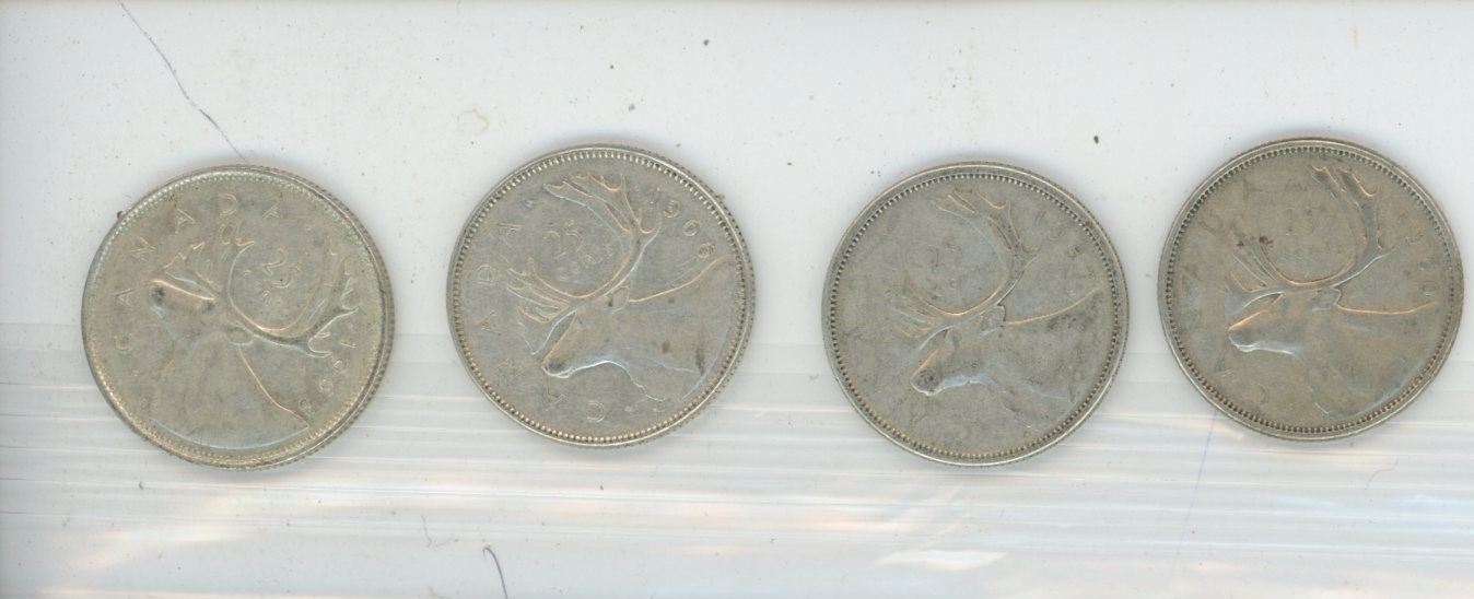 4 Canadian Quarters, 1957, 1966, 1958, 1960