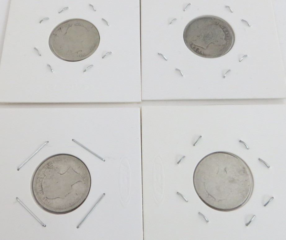 4 Canadian Silver Dimes Dates Unknown Queen Victoria on backs