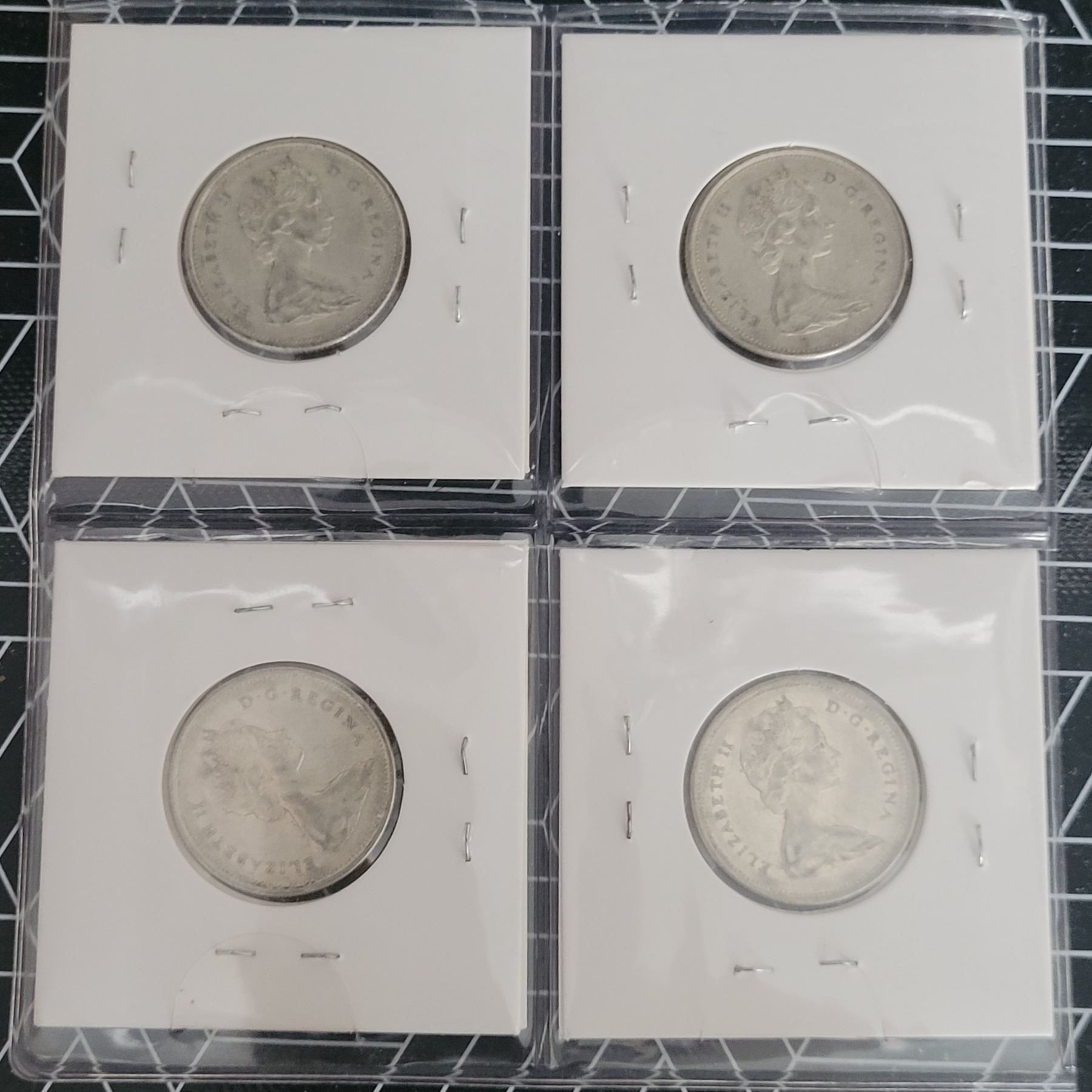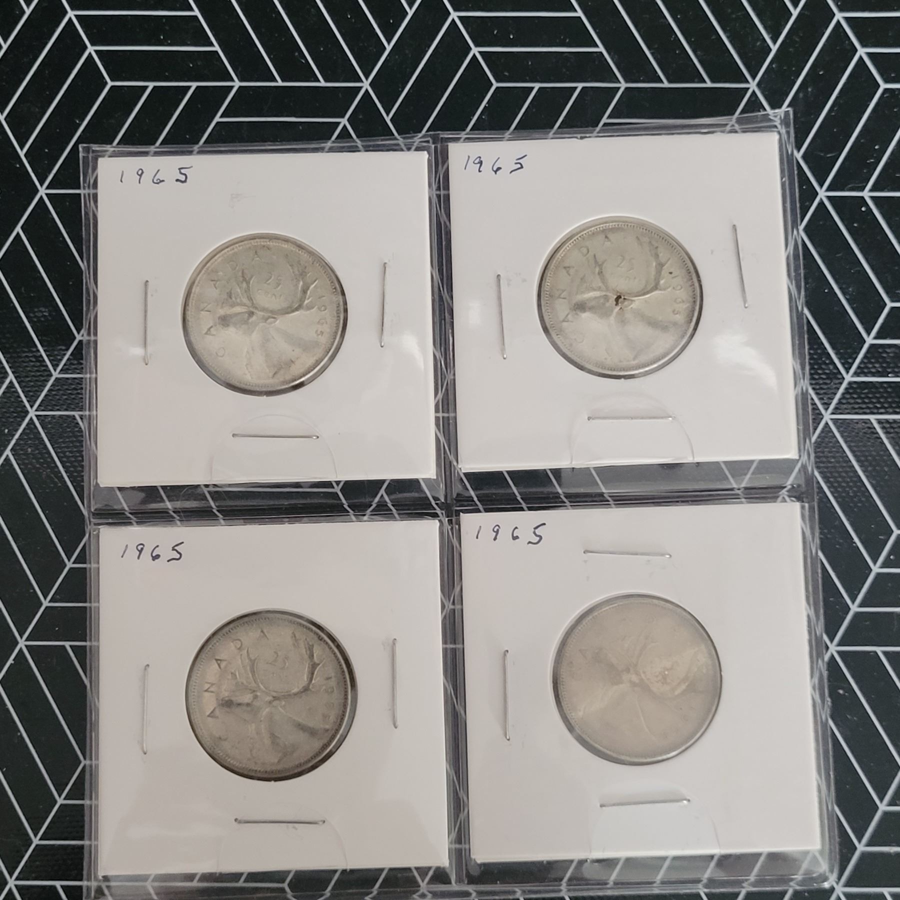 4 Canadian Silver Quarters 1965