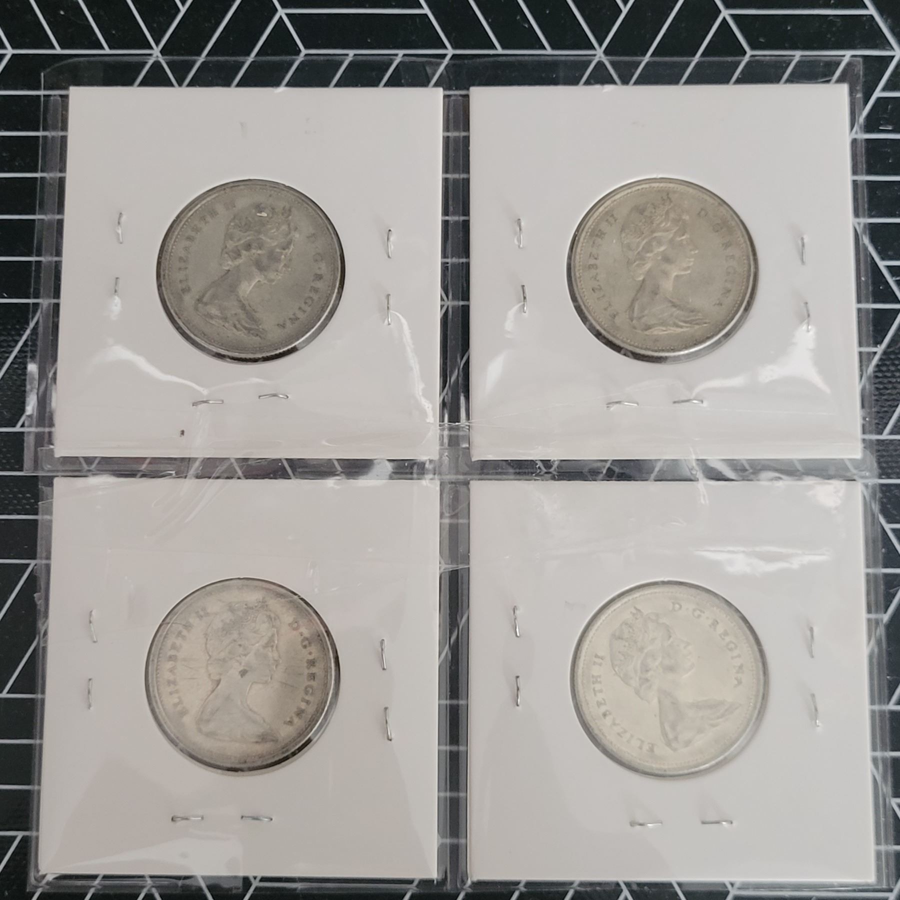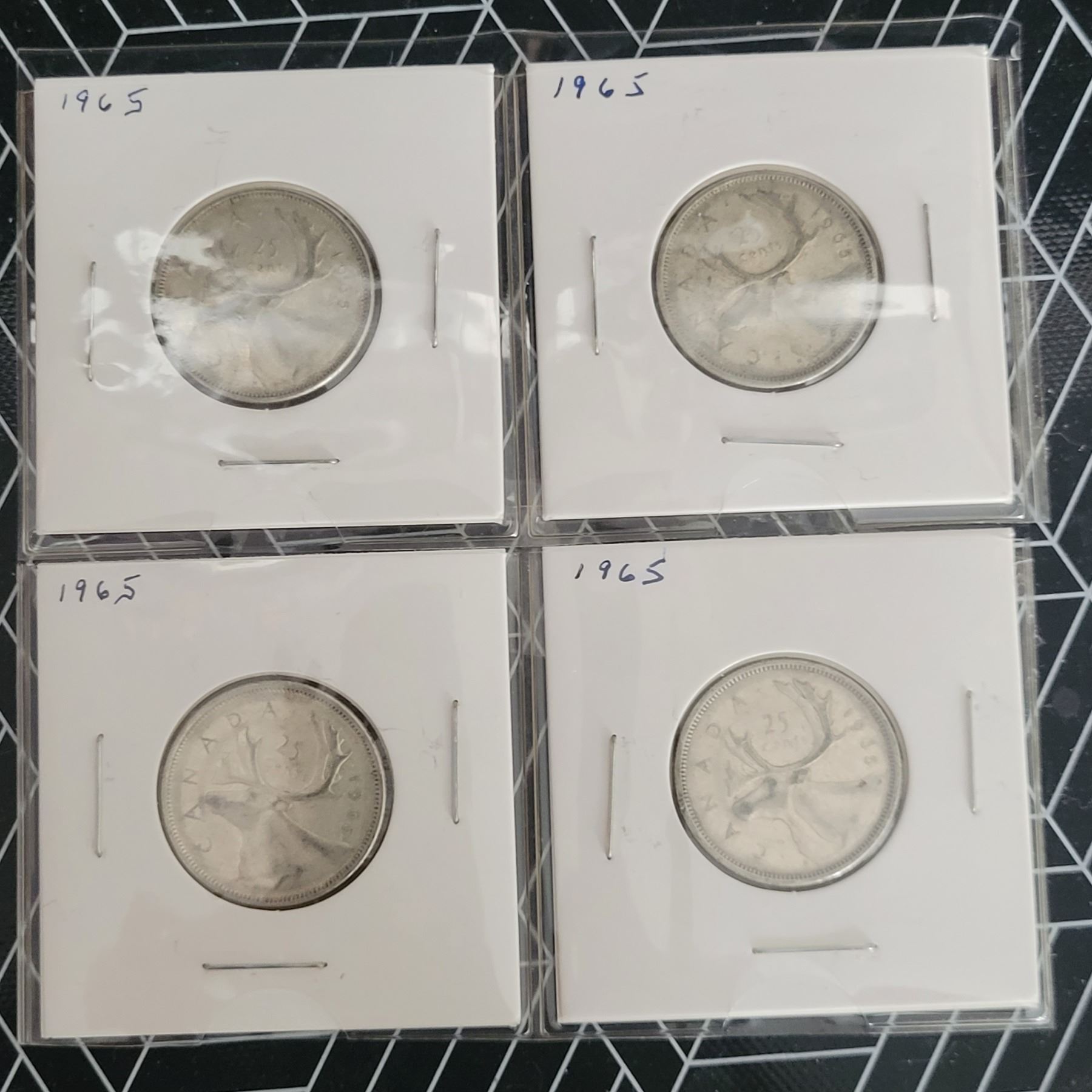 4 Canadian Silver Quarters 1965
