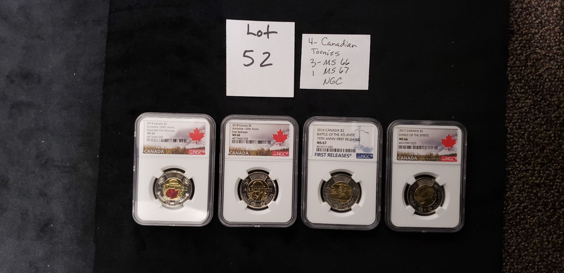 4- Canadian Toonies 3 MS-66 & 1MS 67 NGC
