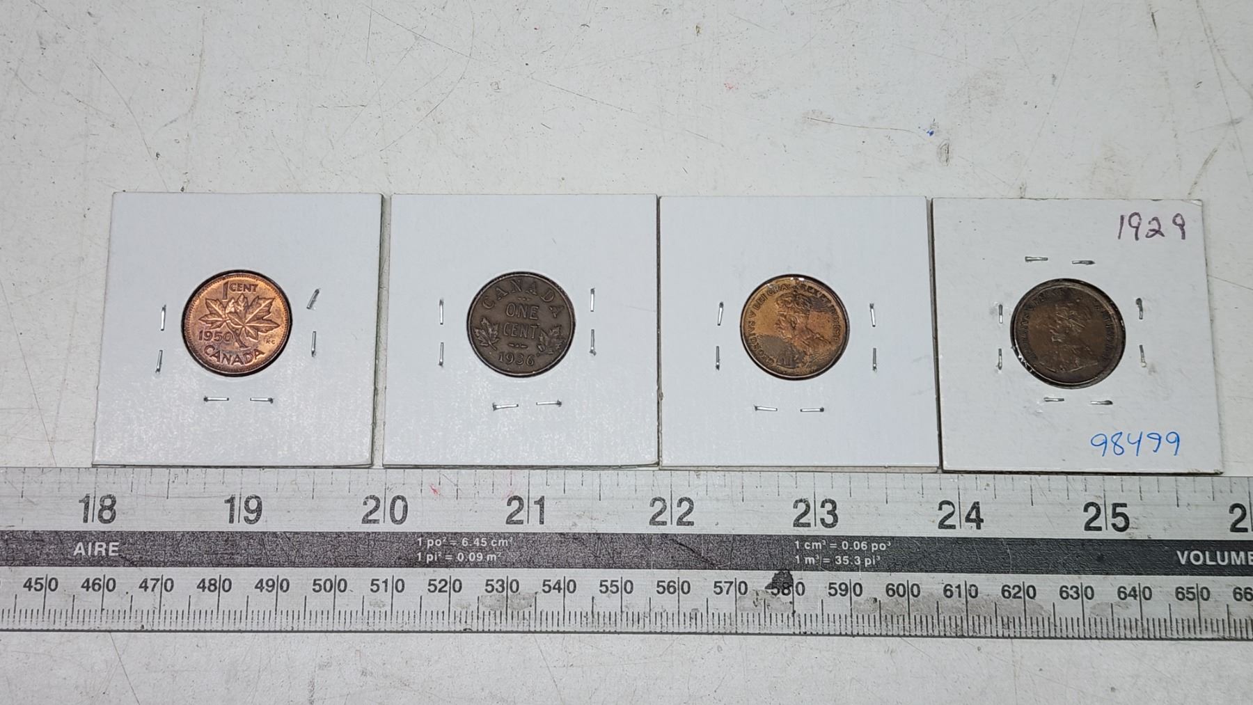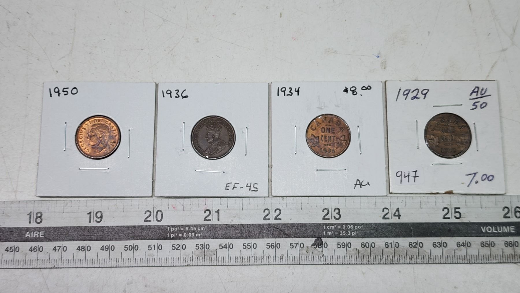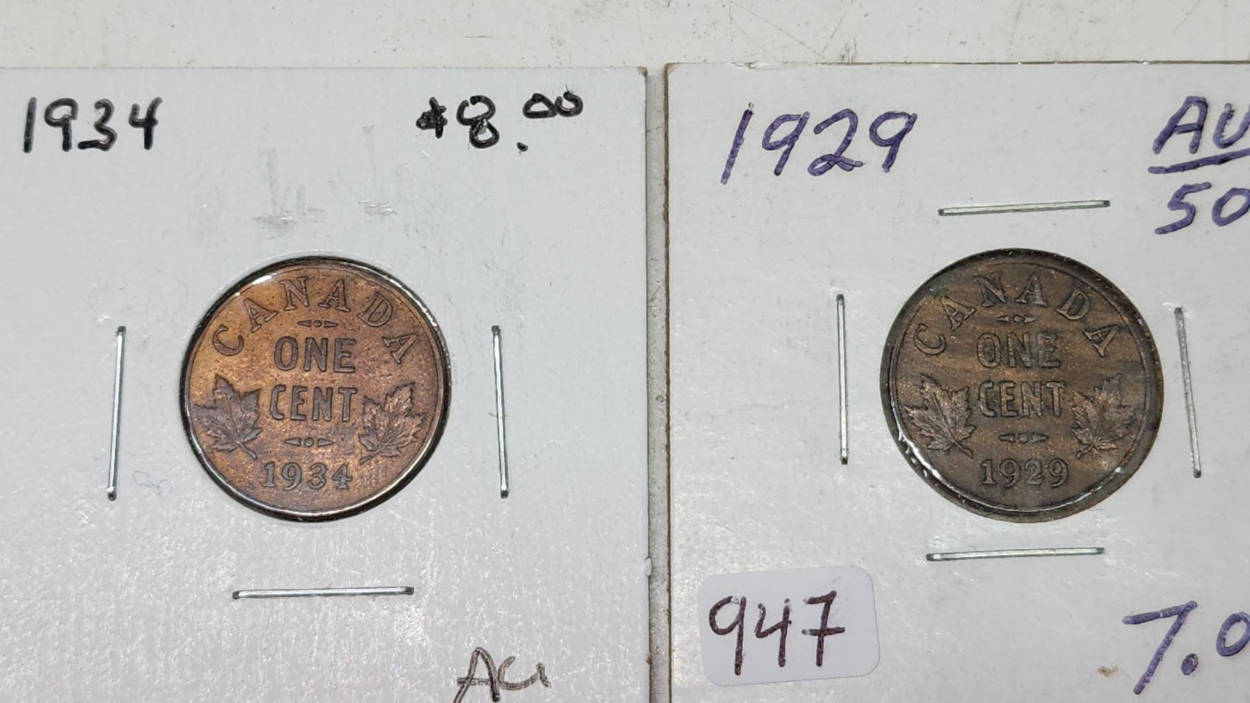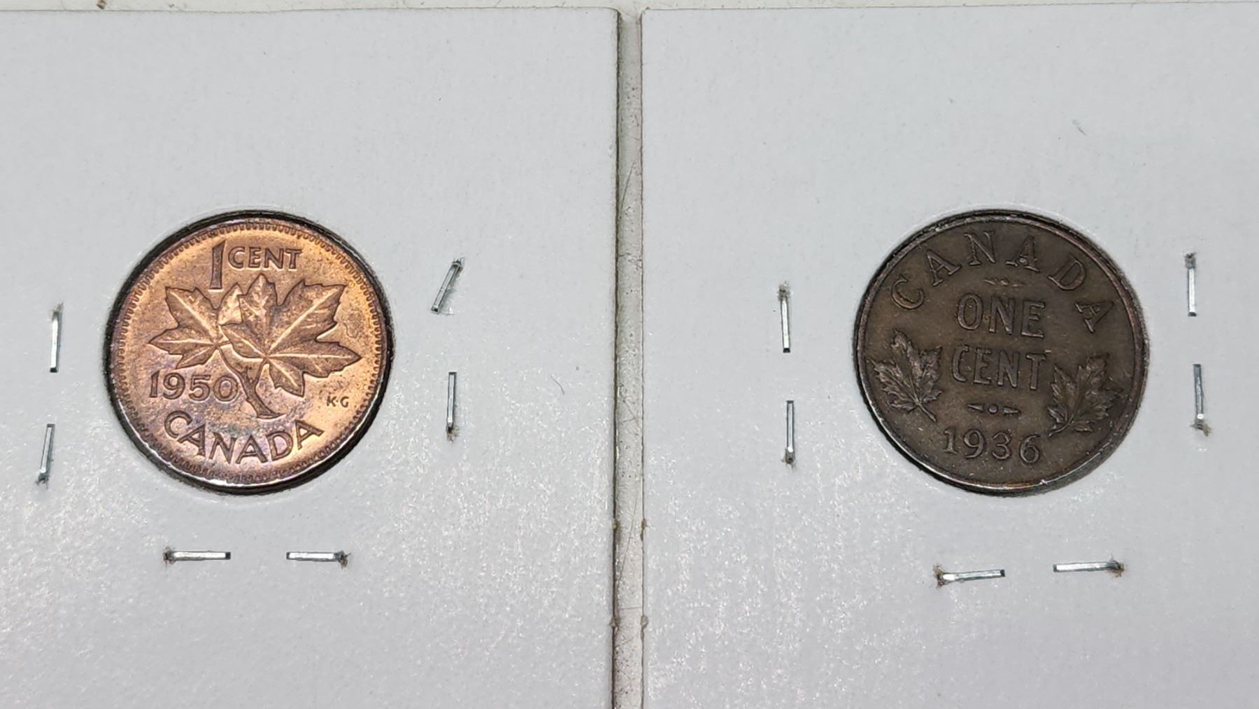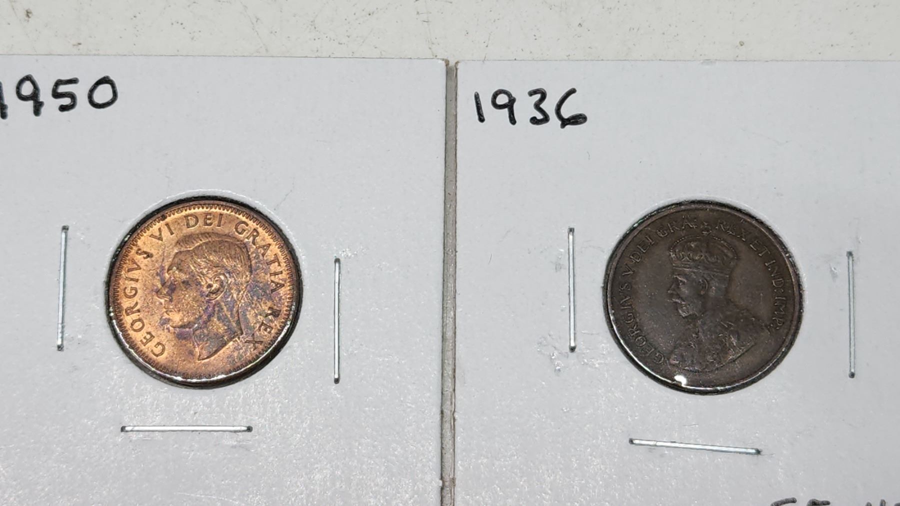 4 Canadian small cent coins - 1929, 1934, 1936, 1950
