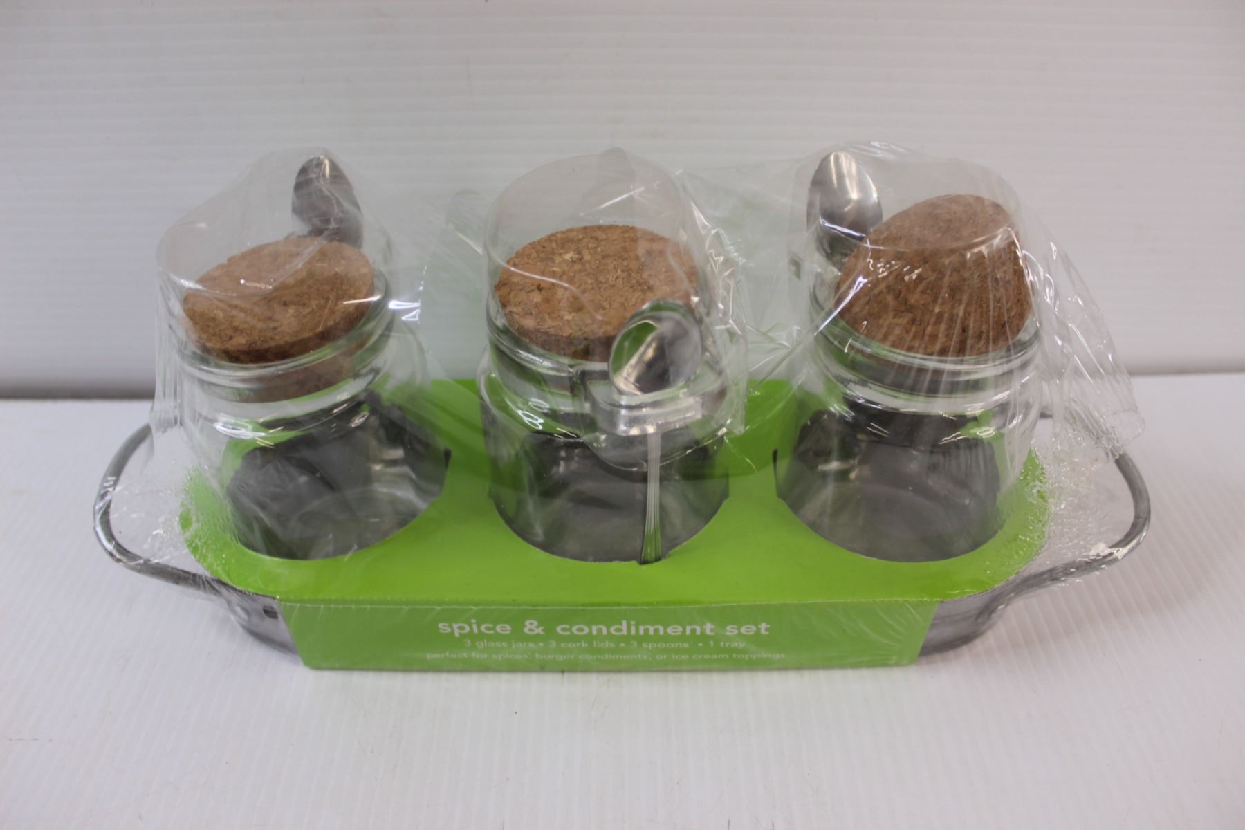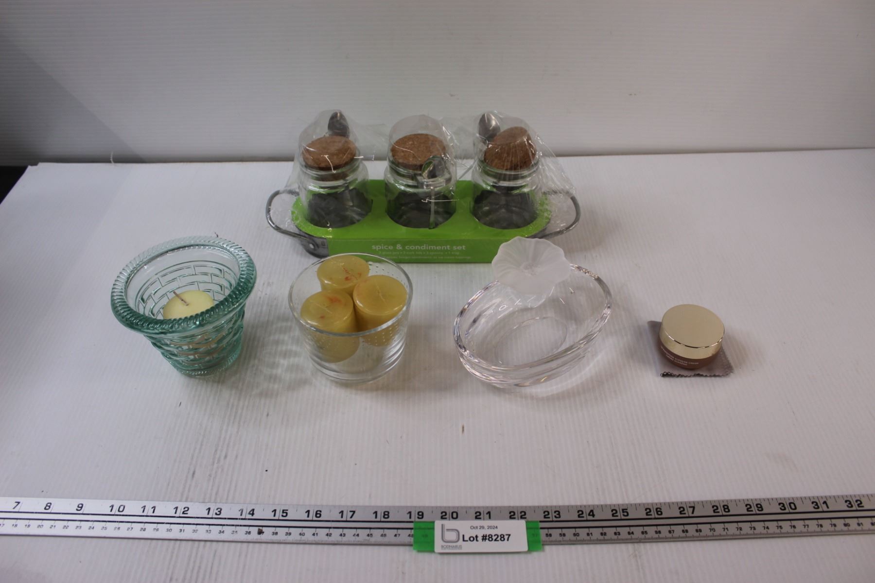 (4) Candles, (3) Glass Candle Holders, Spice & Condiment Set