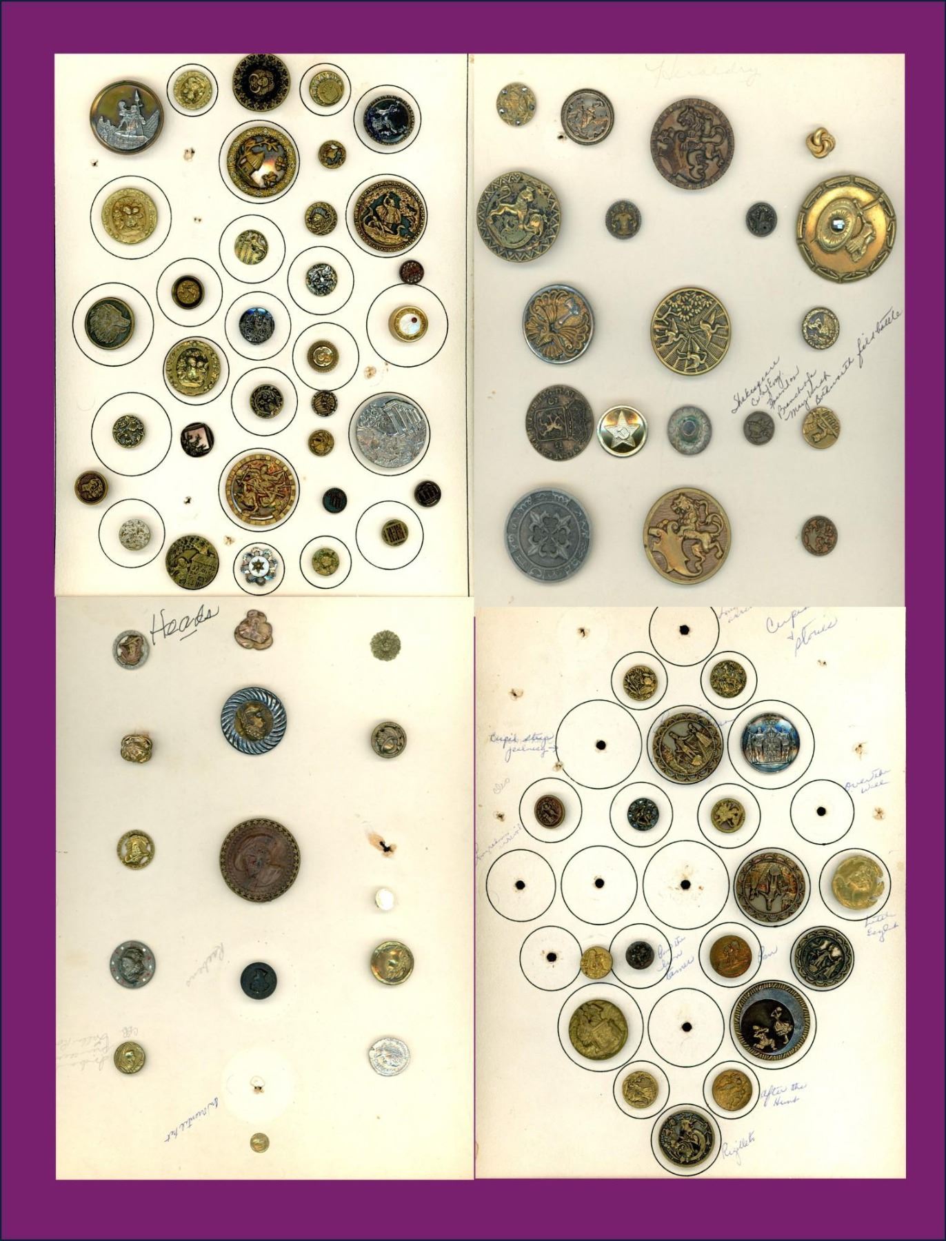 85 S/M/L mostly 19th century examples including many pictorials. Here is a nice varied selection of different pictorials and several different metals. A couple of other materials in metal are also represented.