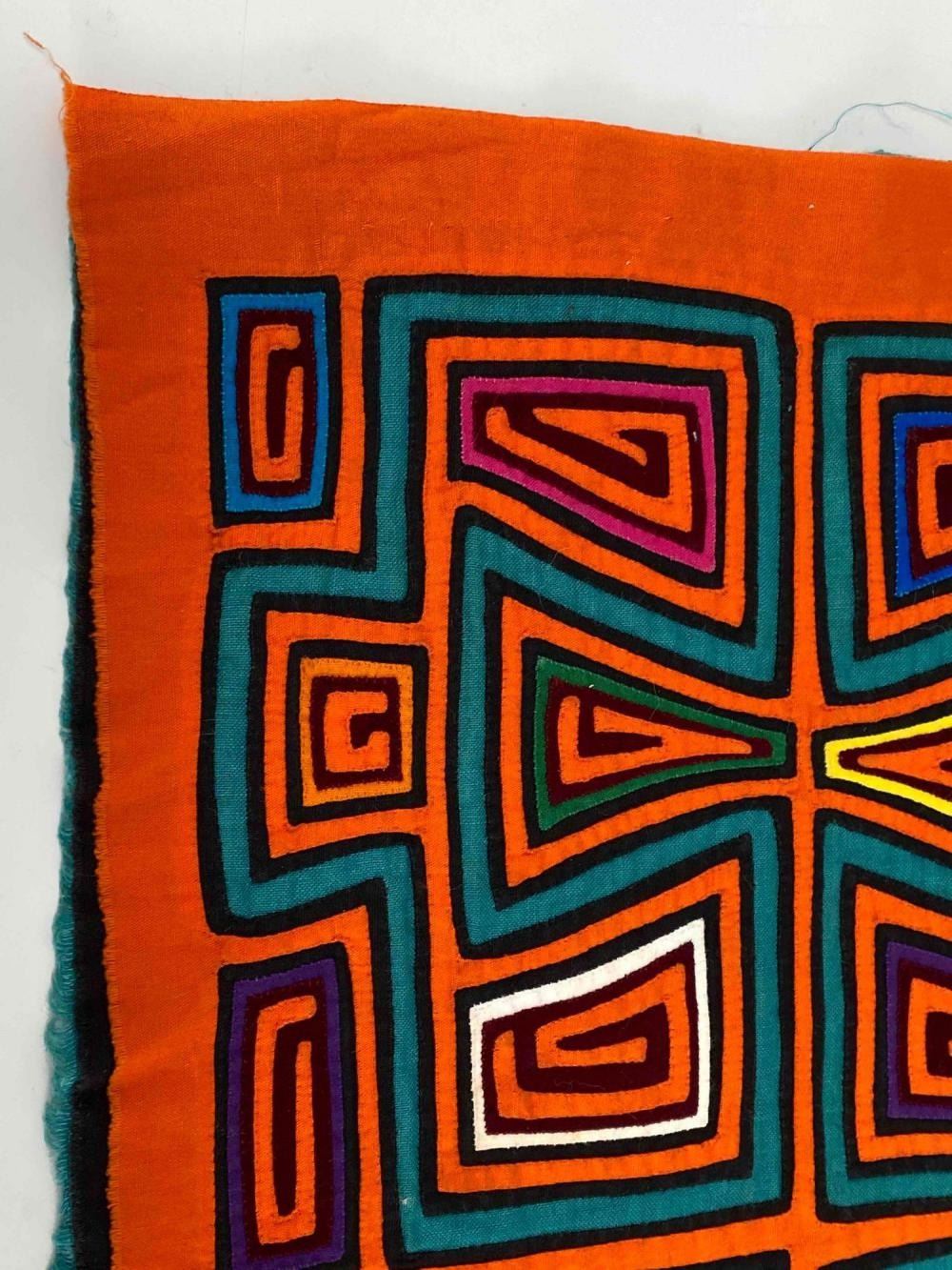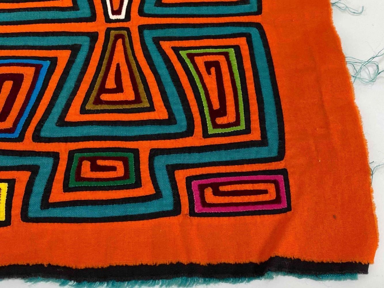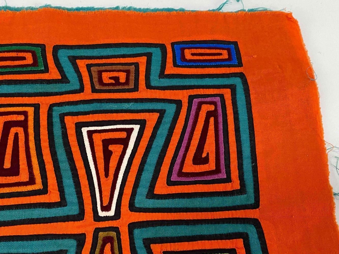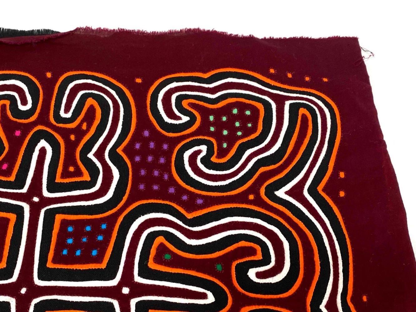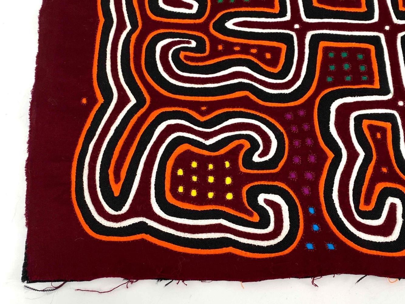 4 Central American Hand Stitched Mola Textiles With Geometric And Snake Designs. Largest Approximately 17.75L x 15.5W in. Smallest Approximately 16.625L x 11.125W in.
