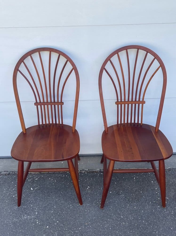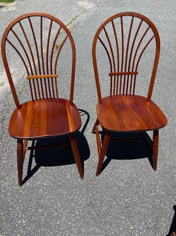 Set of 4 Cherry Windsor Wheat back chairs by Hearthstone Furniture.