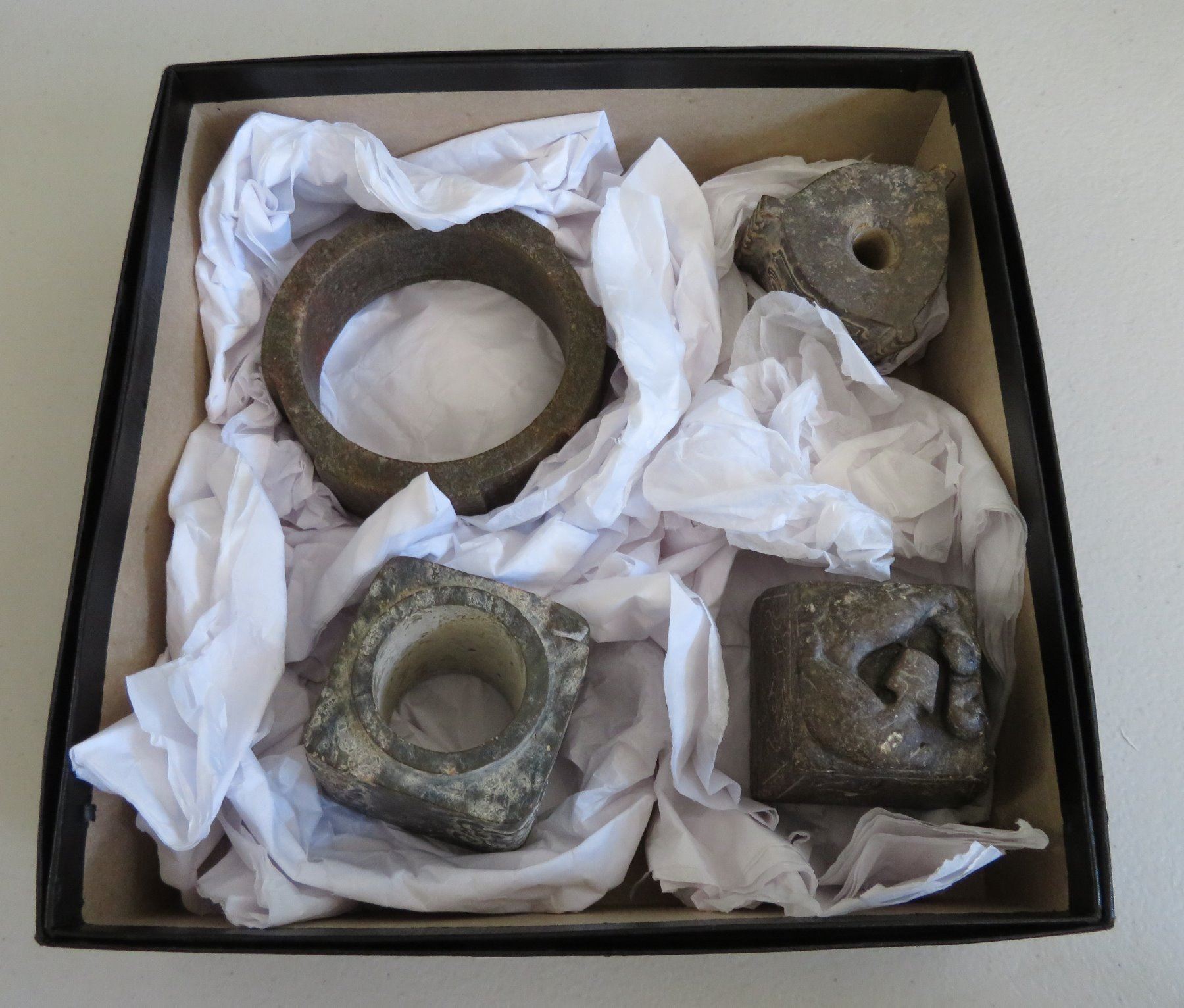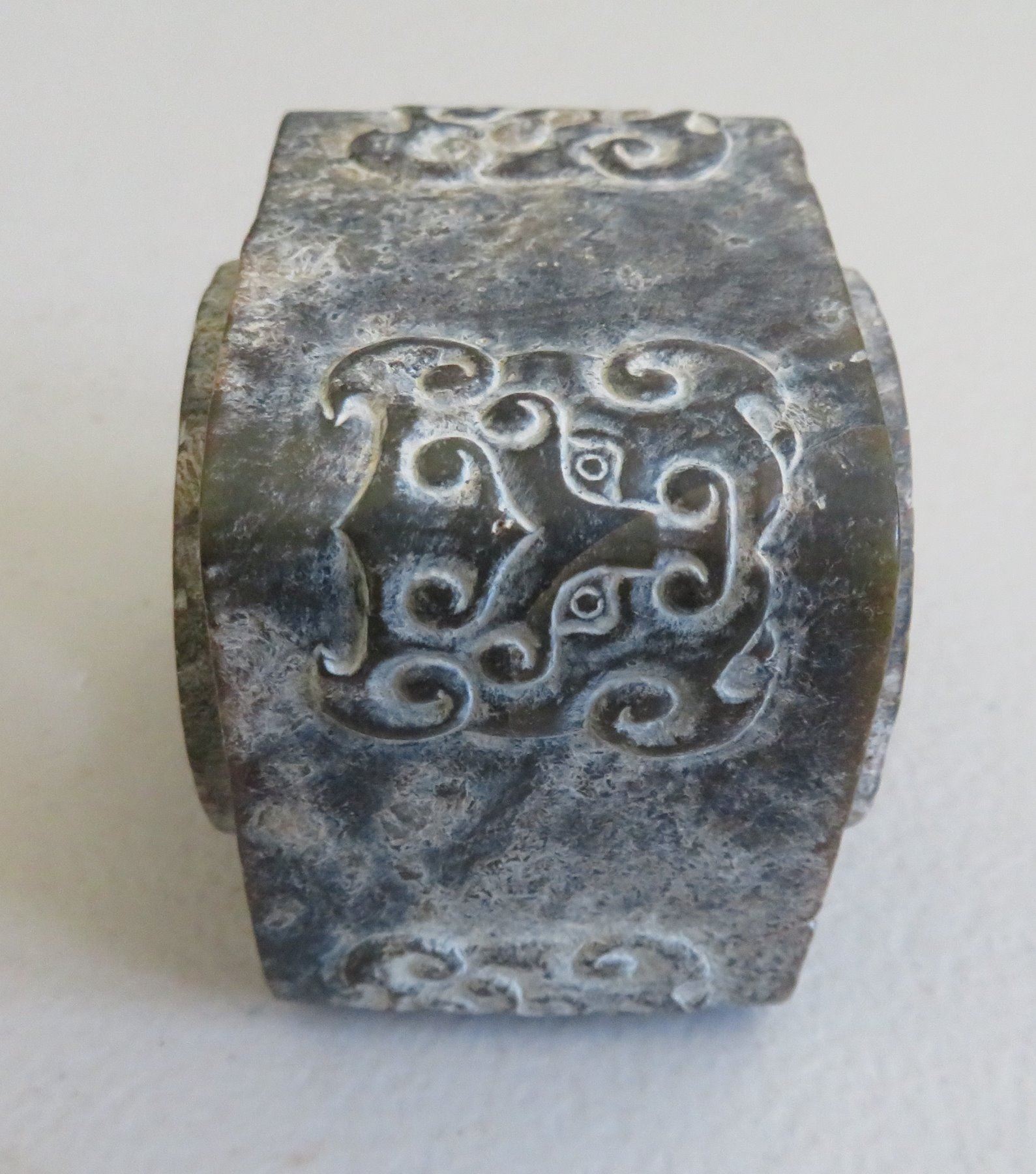 4 Carvings, pre-dynastic items. Made of jade, the items measure approx. 3 1/2" each. China. Early and rare pieces. Condition: Good, see images. Shipping: $30.00 w/insurance and signature, double-boxed, due to weight.