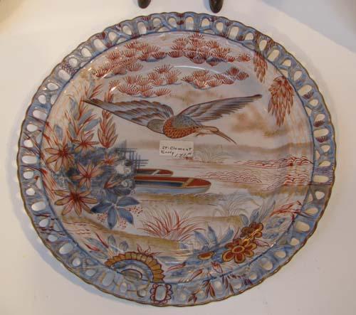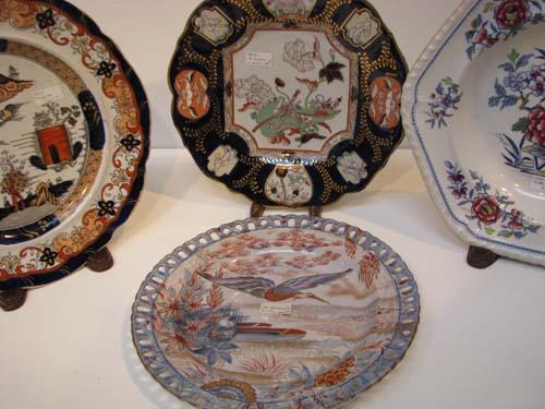 Title: 4 Chinoiserie Decorated Plates including: 2 Mason's ironstone plates, 1 St. Clement reticulated plate, 1 J & W Plate