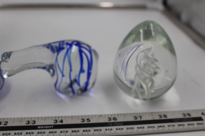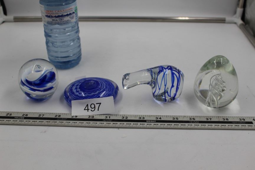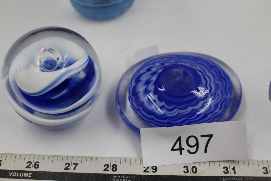 4 Clear and Blue Glass Paperweights