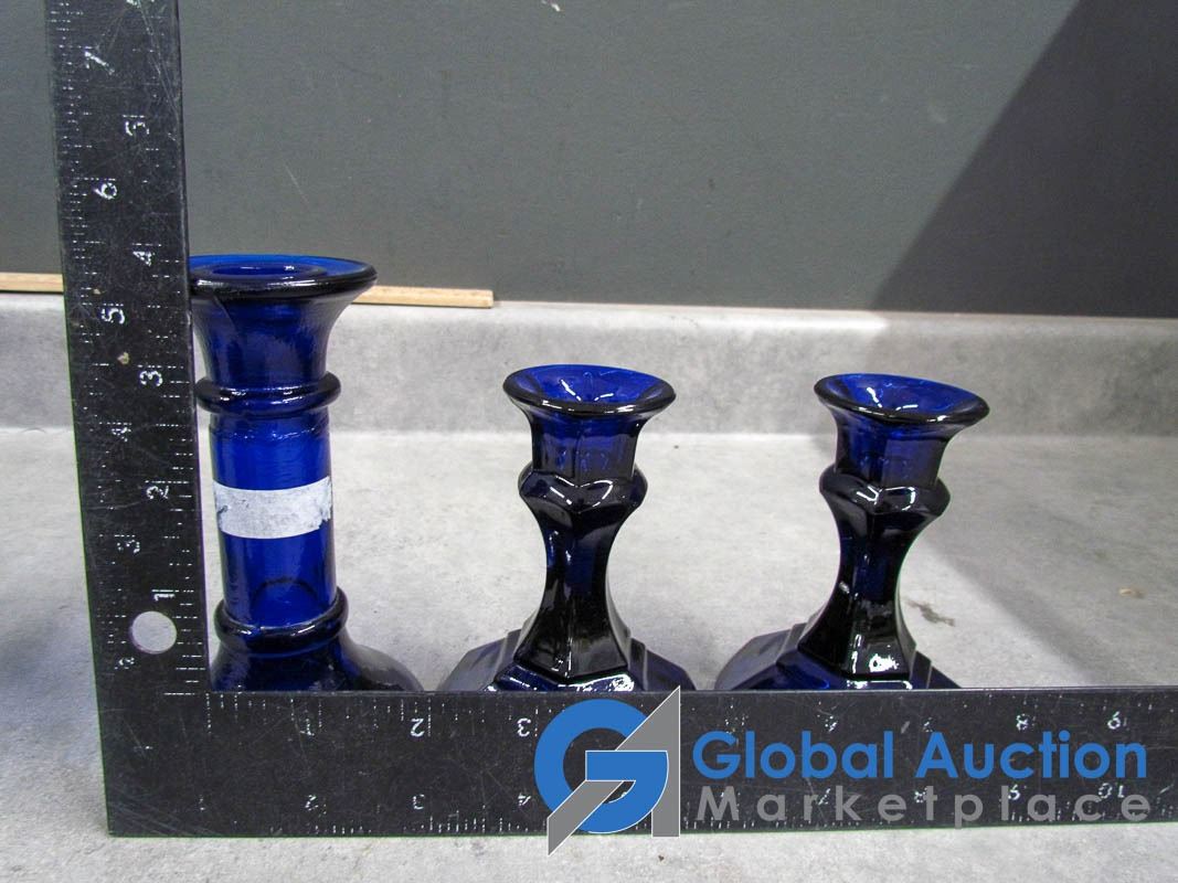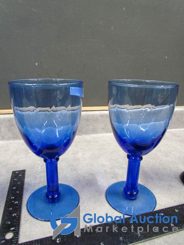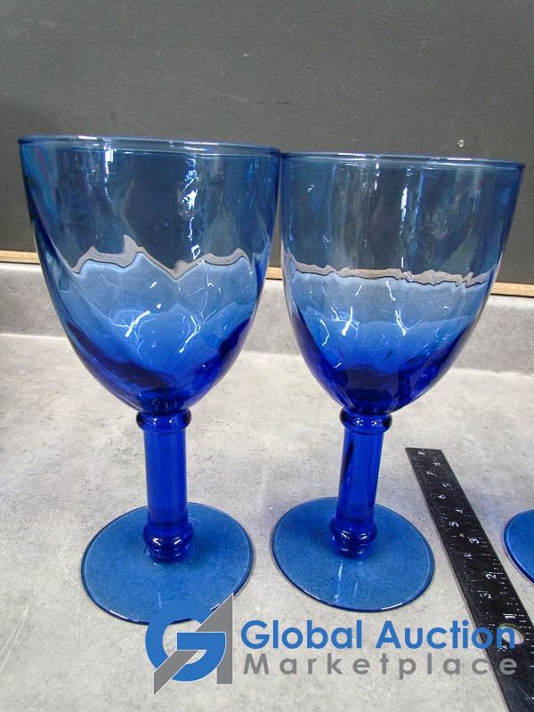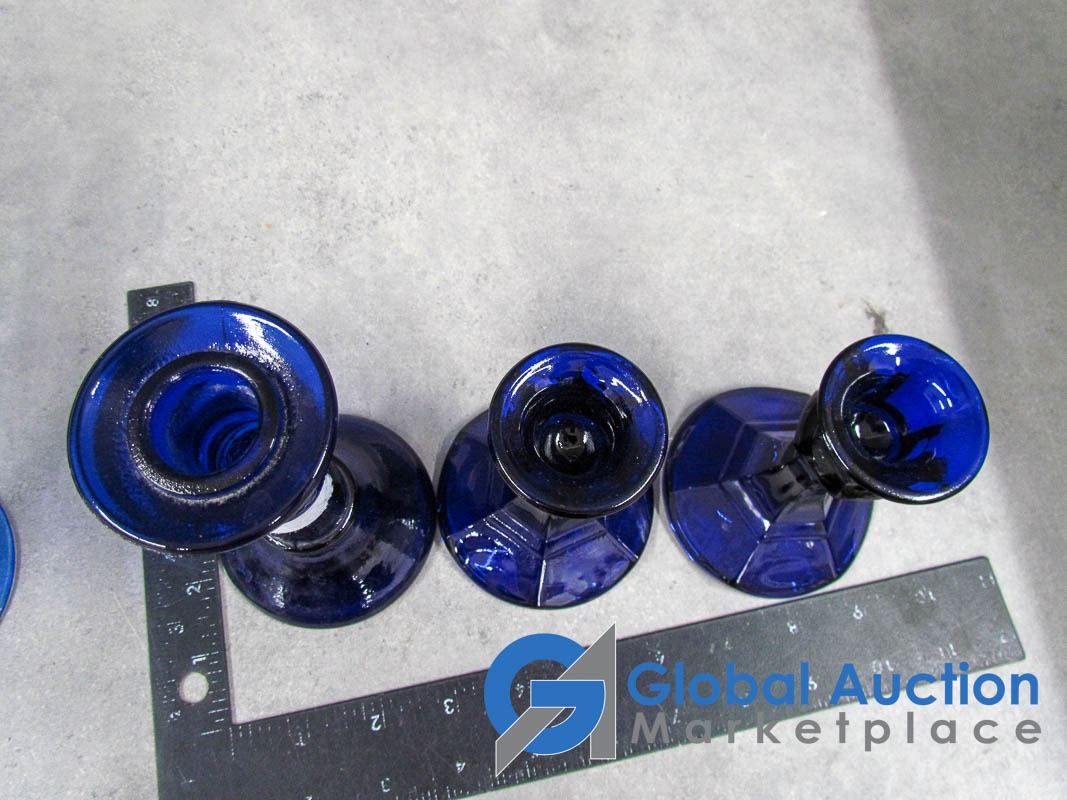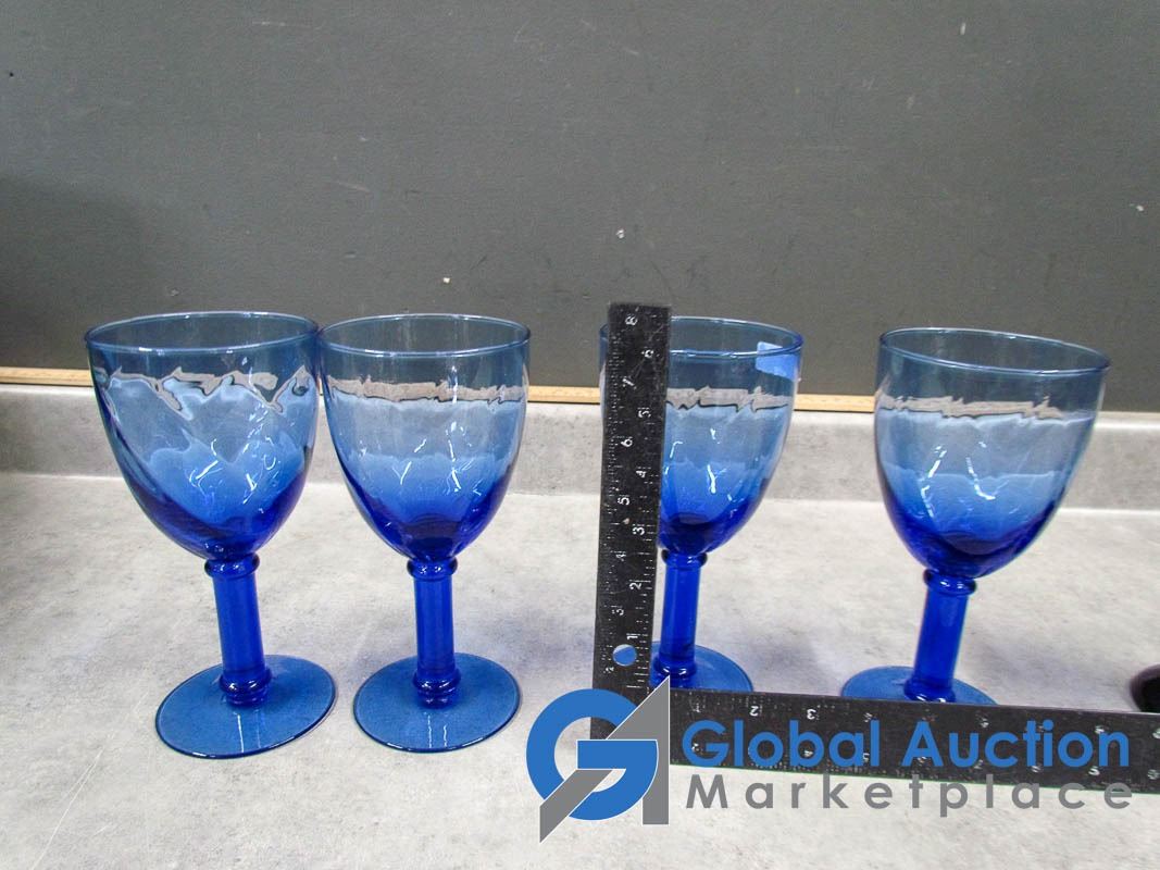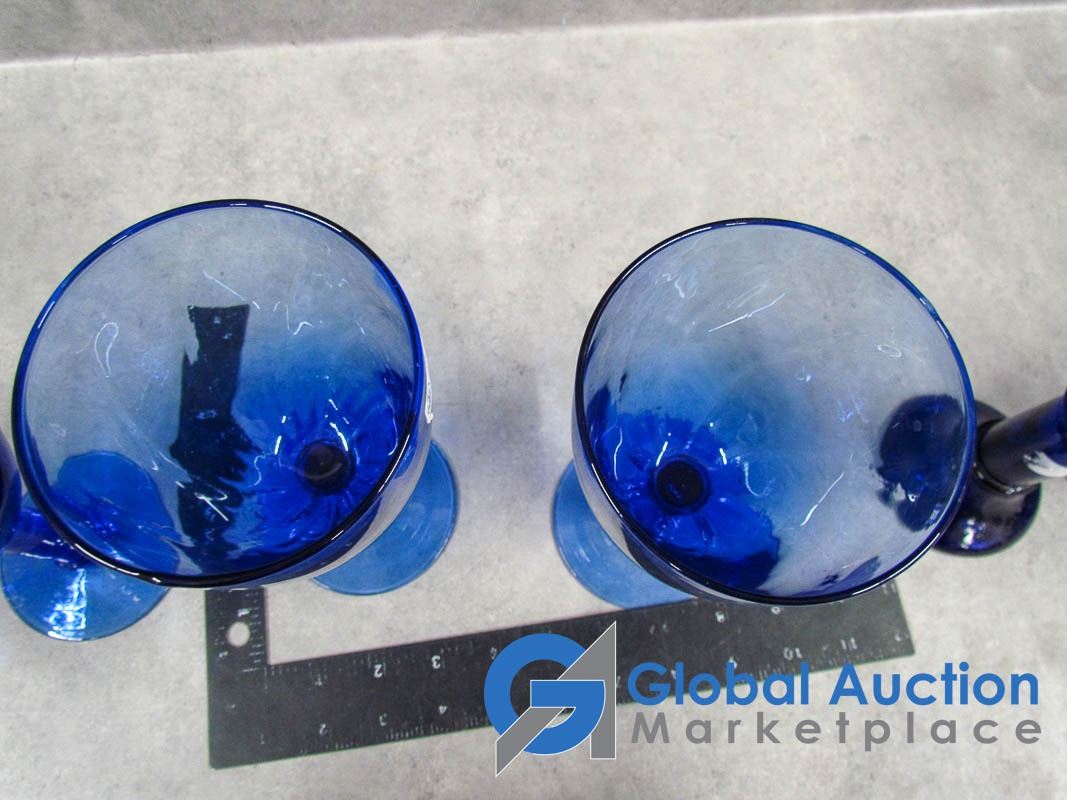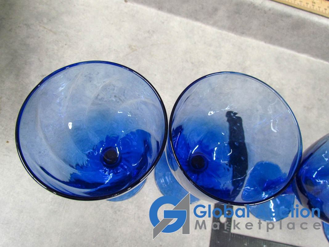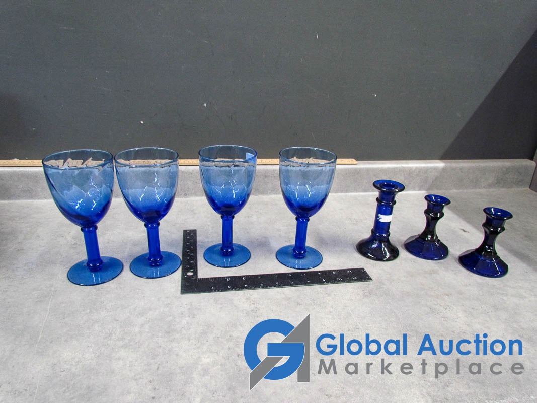 (4) Cobalt Blue Glass Goblets and Blue Cobalt Glass Candle Sticks