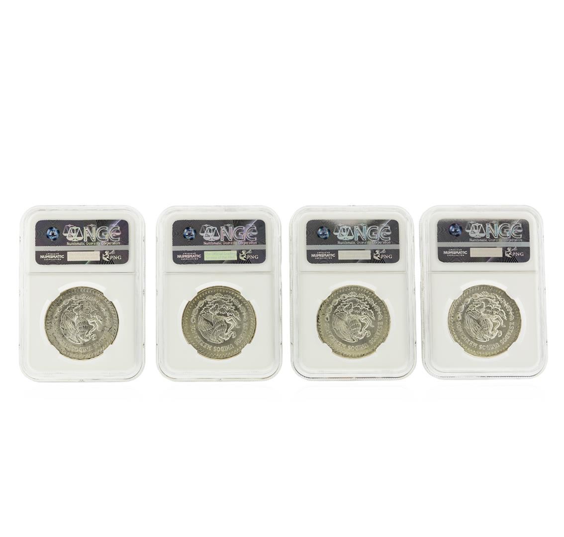 One 4 Coin Set 1982-1985 Libertad Silver Coin Set NGC Graded. NGC Certified.