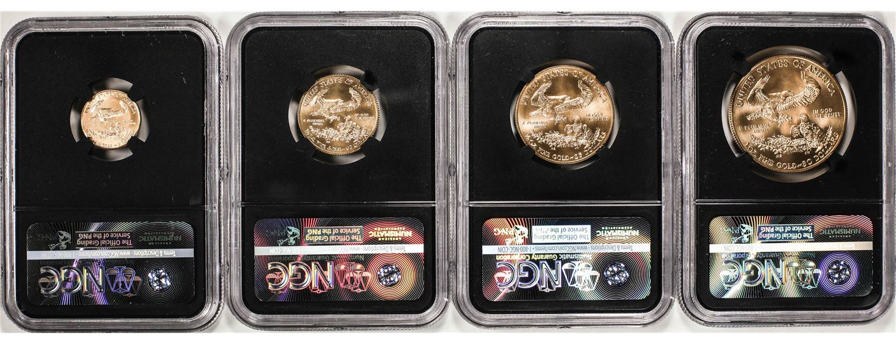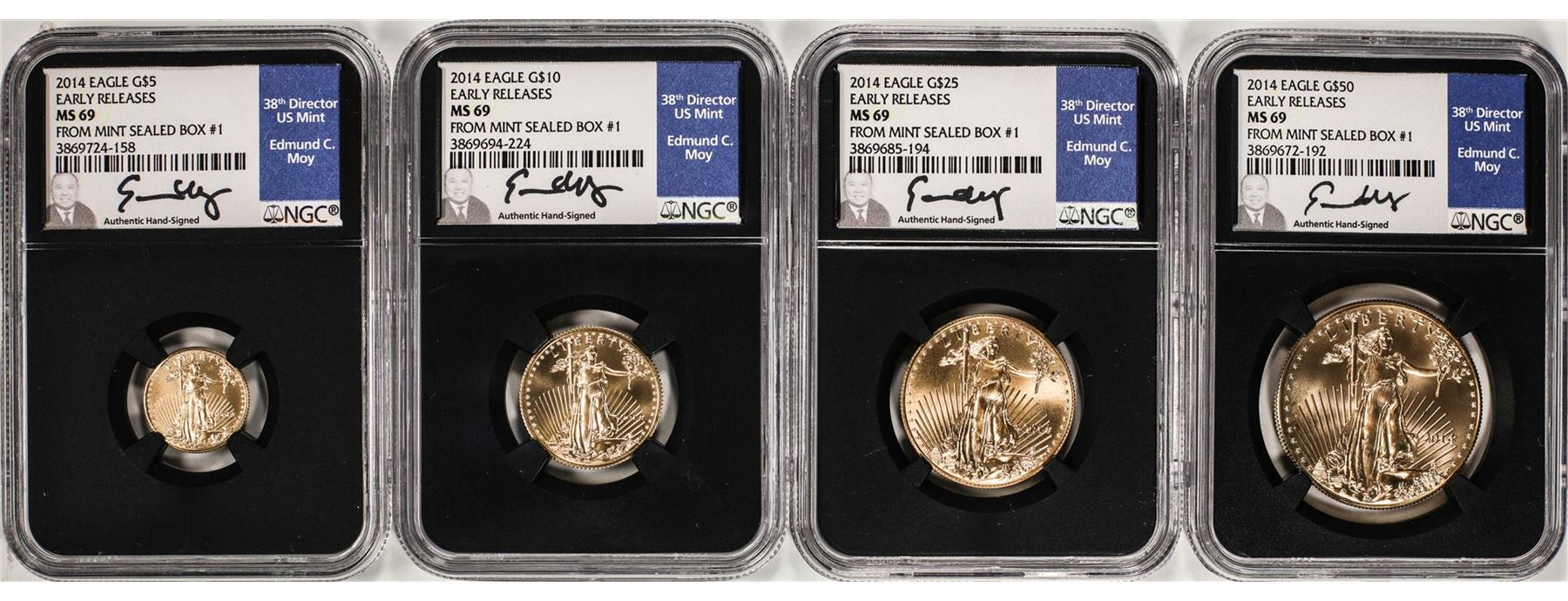One 2014 American Gold Eagle (4) Coin Set NGC MS69 ER W/Edmund C. Moy Signed Box #1. NGC Certified.