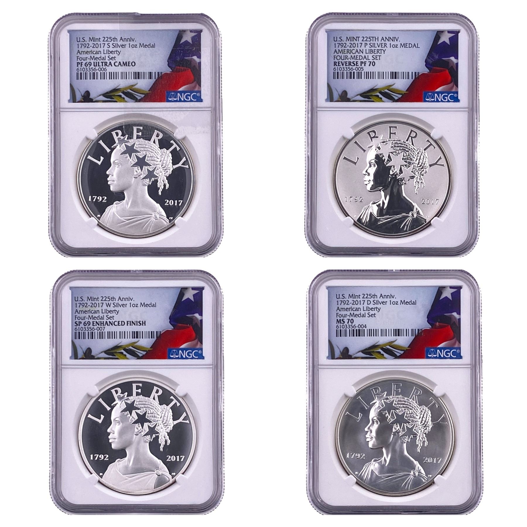[4 Coins] 1792-2017 1oz Sliver American Liberty Mint 225thAnniv. NGC PF69 Ultra Cameo