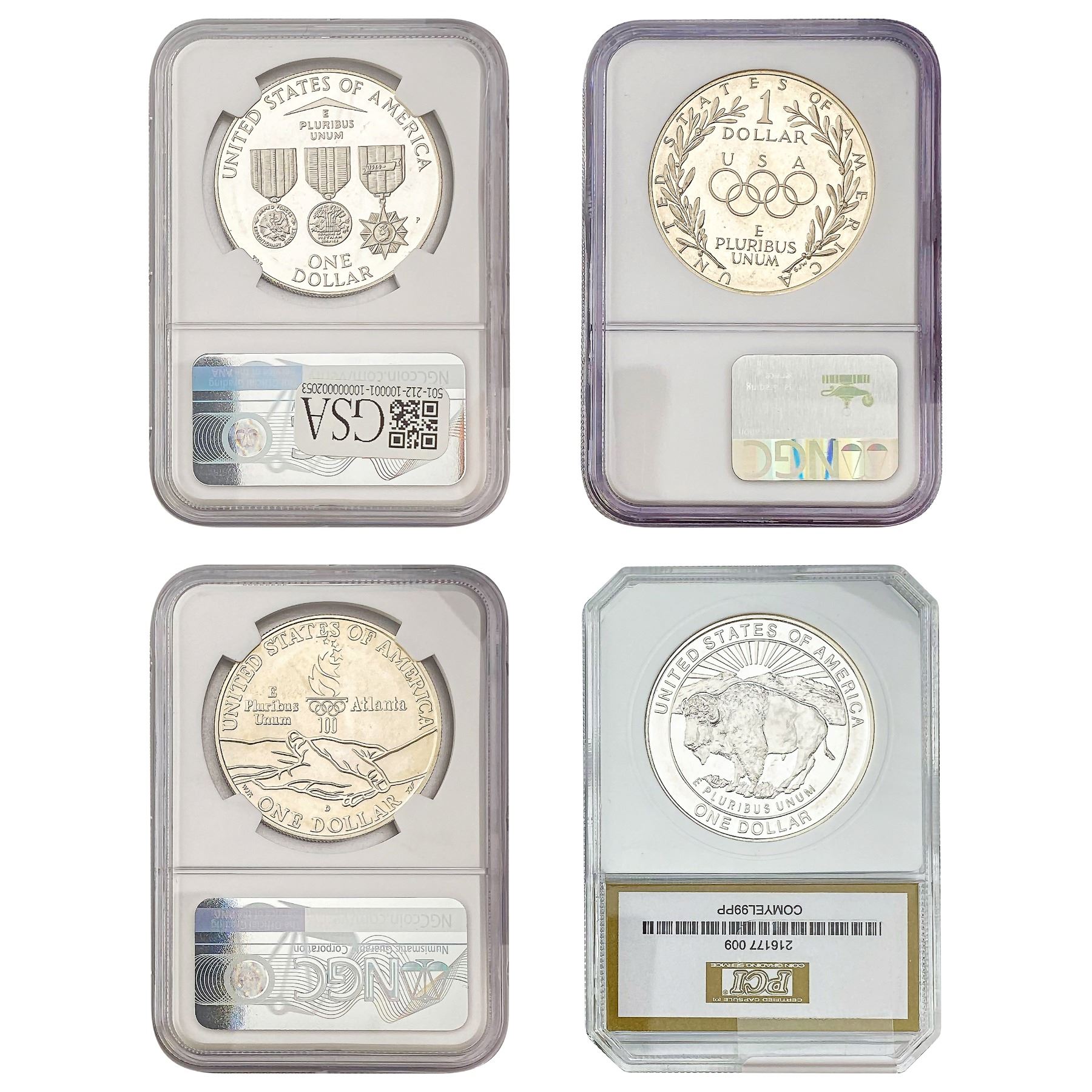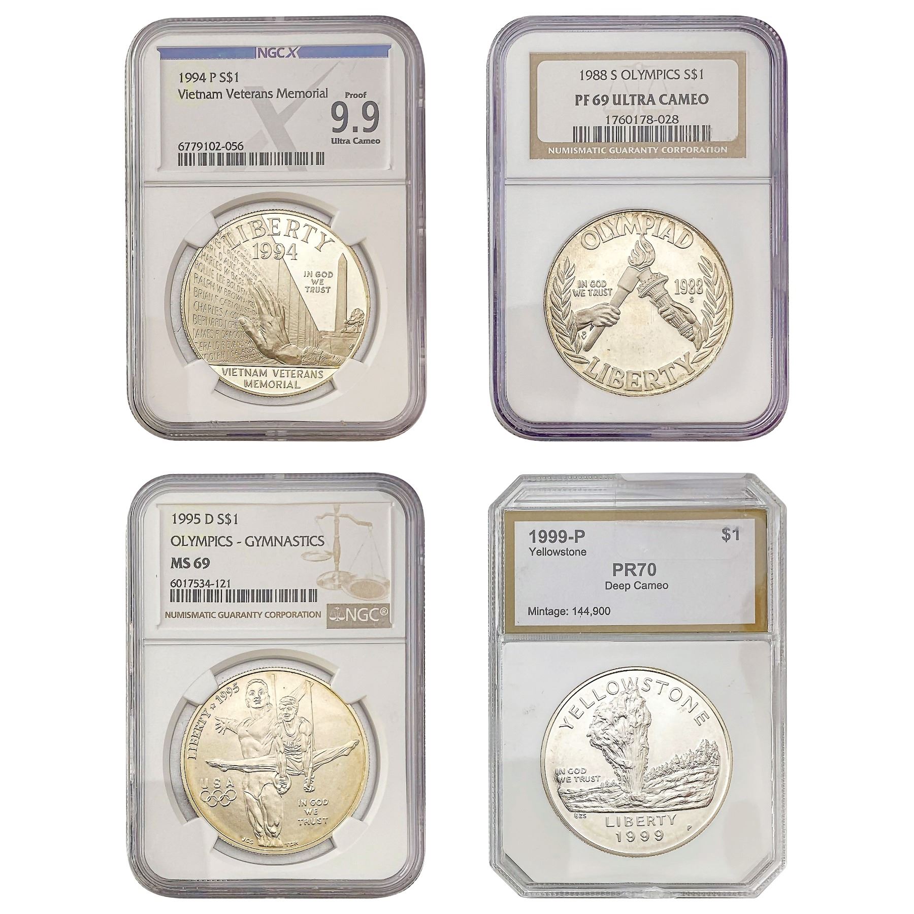 [4 Coins] 1988-1999 US Commem. Silver Dollars NGC/PCI MS/PR69/70 DCAM