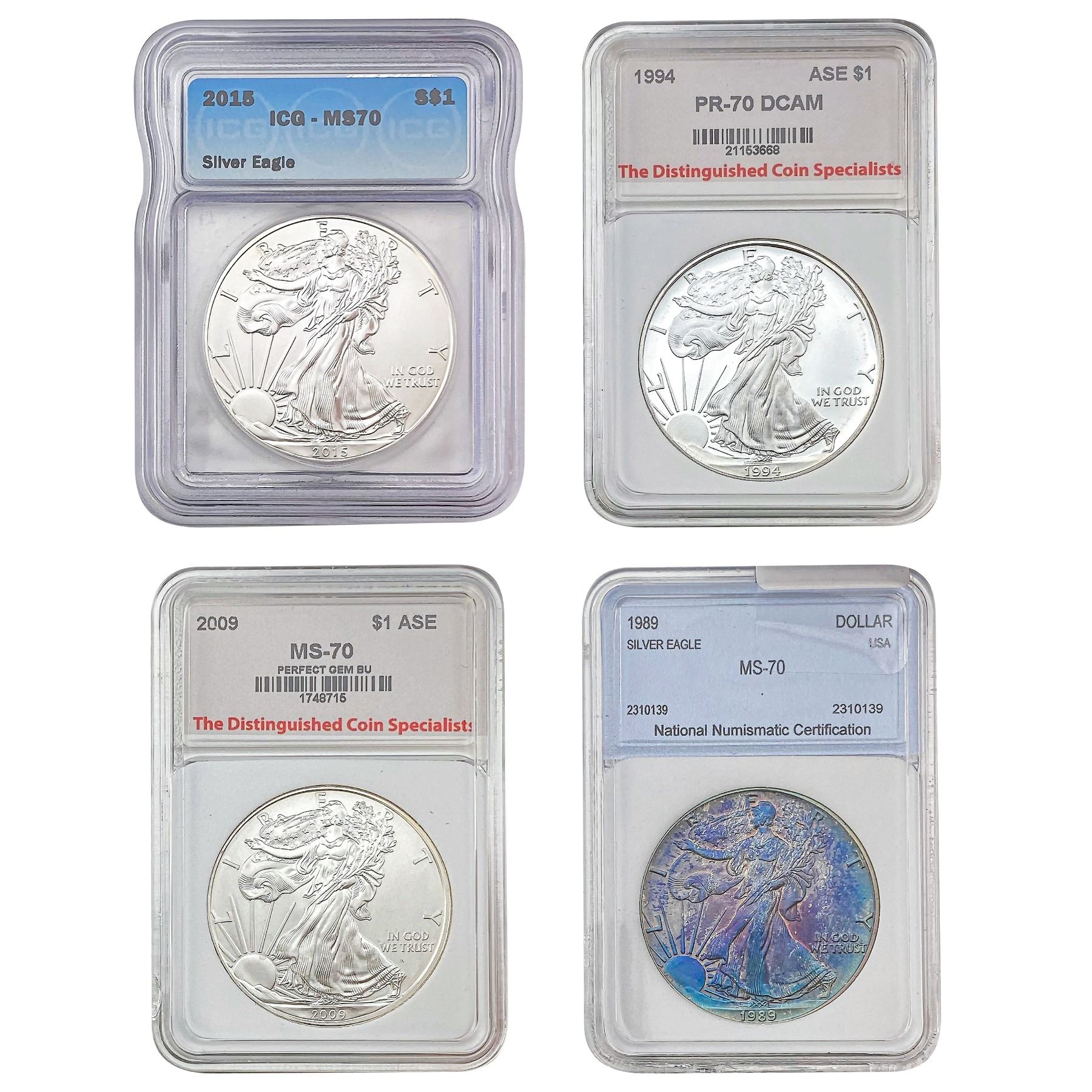 [4 Coins] 1989-2015 Graded UNC/PF US Silver Eagle Lot