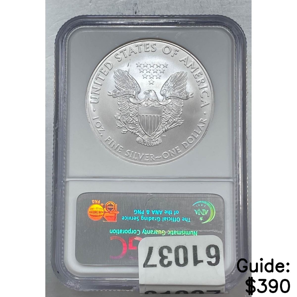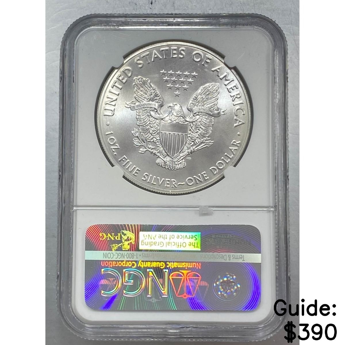 e. Coins sold referencing a third-party grading service are sold “AS IS” without any express or implied warranty, except for a guarantee by GSA that they are genuine. Removal or alteration of the holder, voids all of Bidder’s claims concerning that Product. Certain warranties may be available from the grading services and Bidders are referred to them for further details: Numismatic Guaranty Corporation (NGC), PO Box 4776, Sarasota, FL 34230, www.ngccoin.com/services/writtenguarantee.asp; Professional Coin Grading Services (PCGS), PO Box 9458, Newport Beach, CA 92658, www.pcgs.com/guarantee.html; ANACS, 6555 S. Kenton St., Ste. 303, Englewood, CO 80111; and Independent Coin Grading Co. (ICG), 7901 East Bellview, Ave., Suite 50, Englewood, CO 80111.