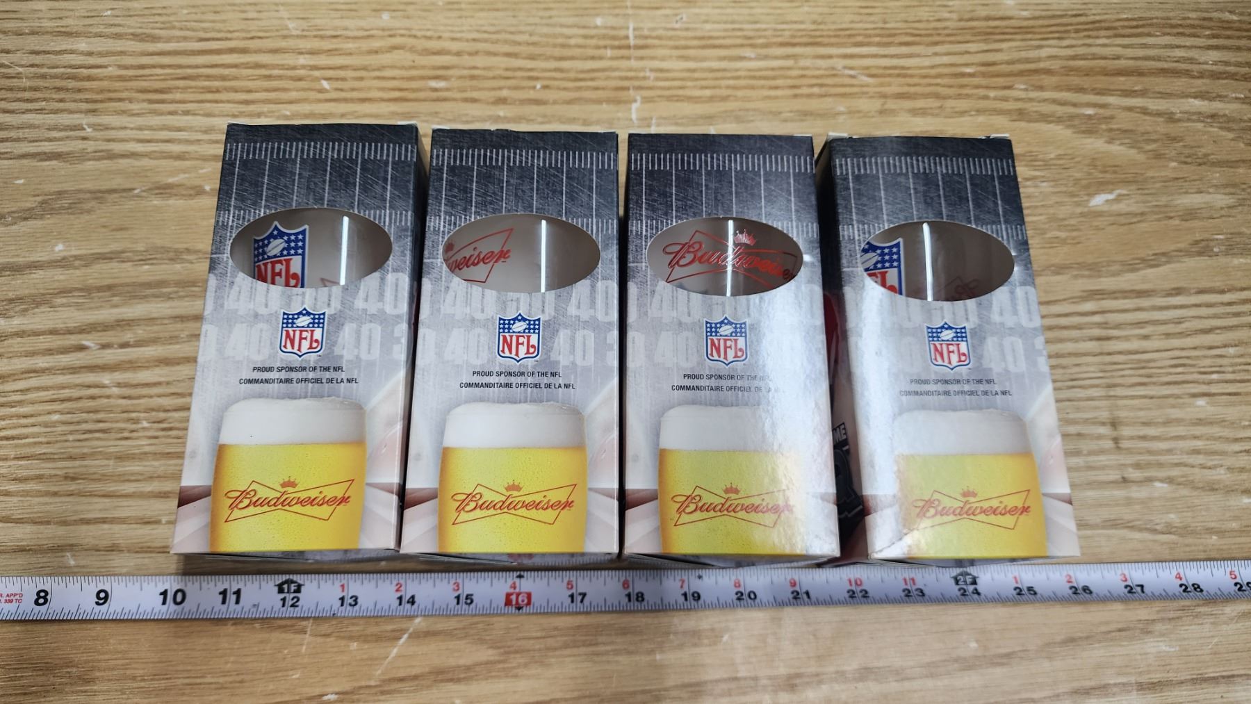 4 Collectors NFL Budwiser drinking glasses - MIB 2007
