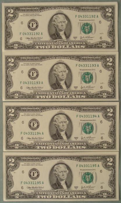 (4) 2003-A $2 Notes, all with consecutive serial numbers