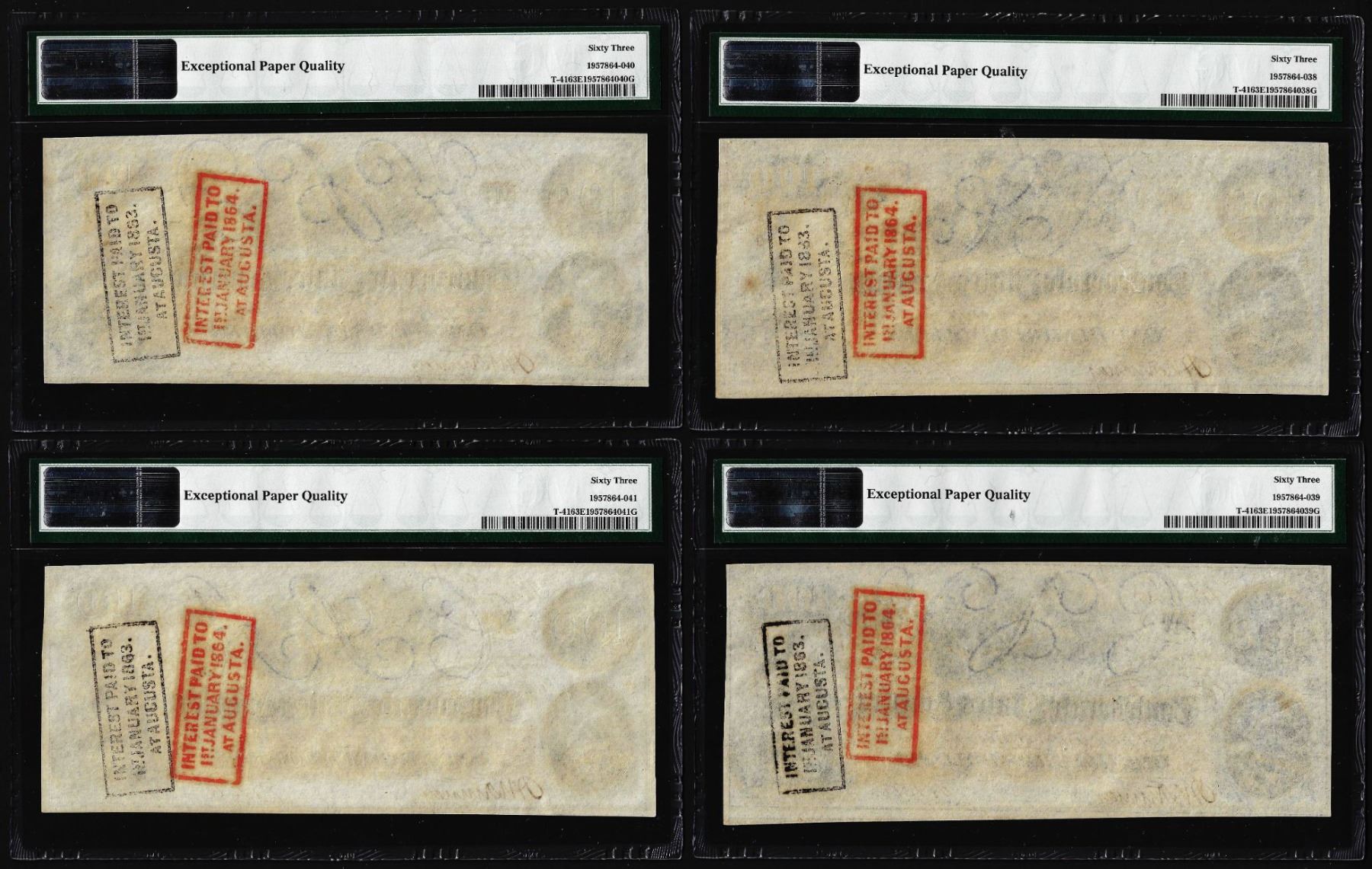 One (4) Consecutive 1862 $100 Confederate States of America Notes PMG Ch. Uncirculated 63EPQ.