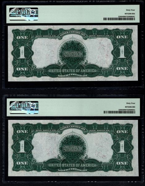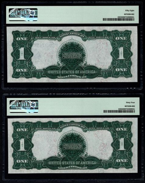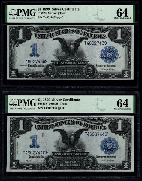 One 4 Consecutive 1899 $1 Black Eagle Silver Certificates PMG.