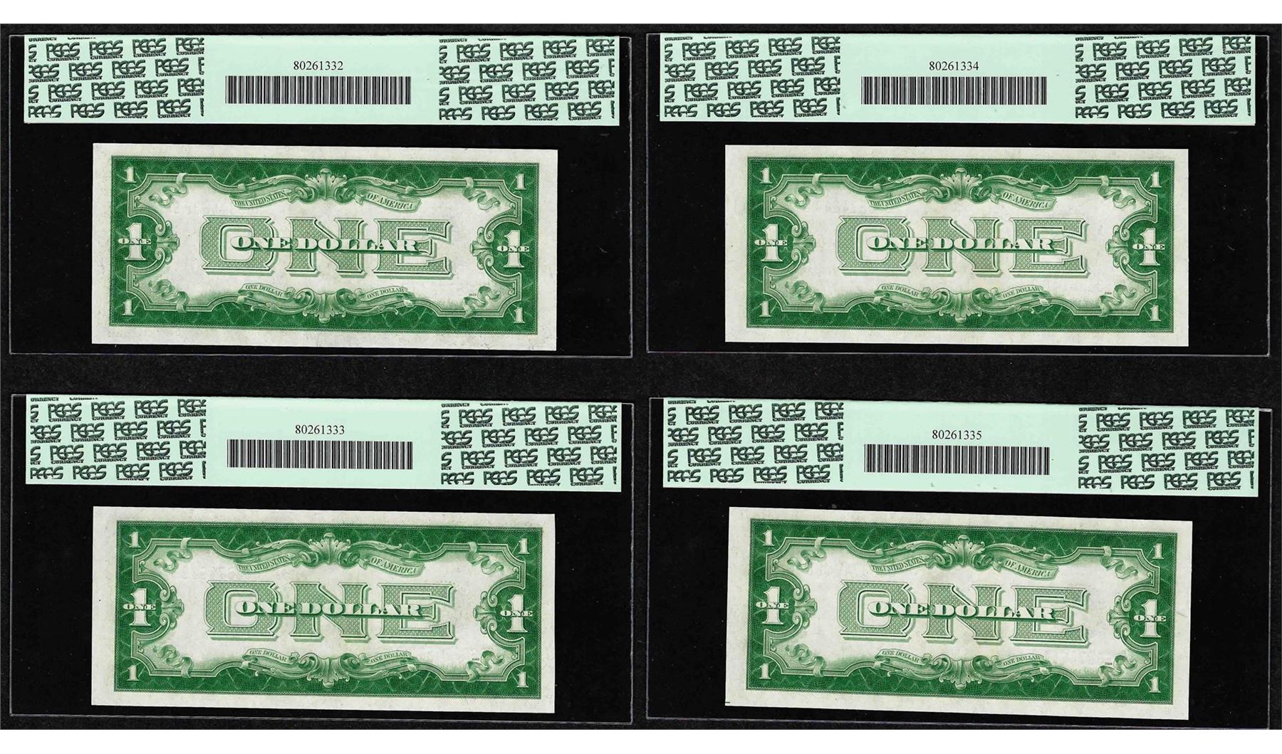 (4) Consecutive 1928B $1 Funnyback Silver Certificate Notes Fr.1602 PCGS Gem New 65PPQ