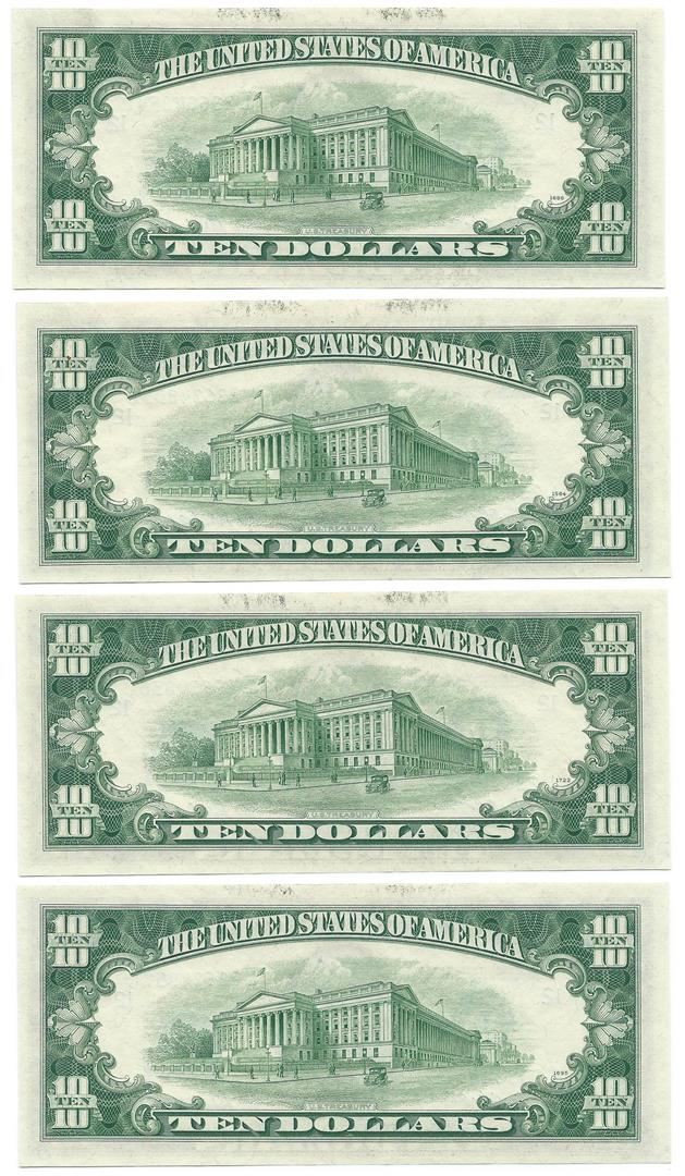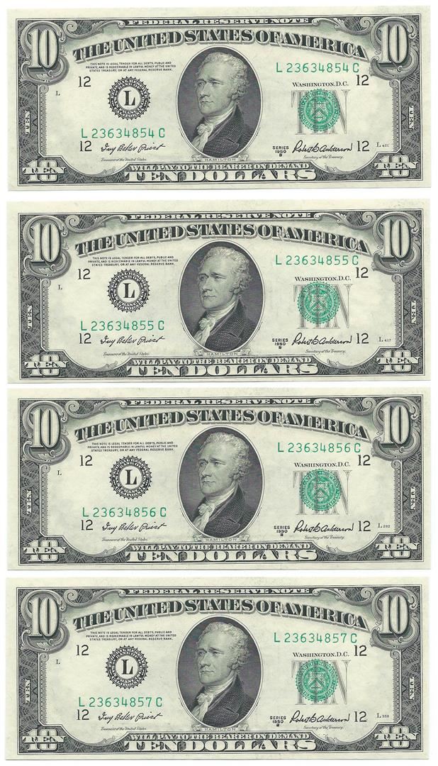 A lot of (4)Consecutive 1950-B $10 Federal Reserve Notes