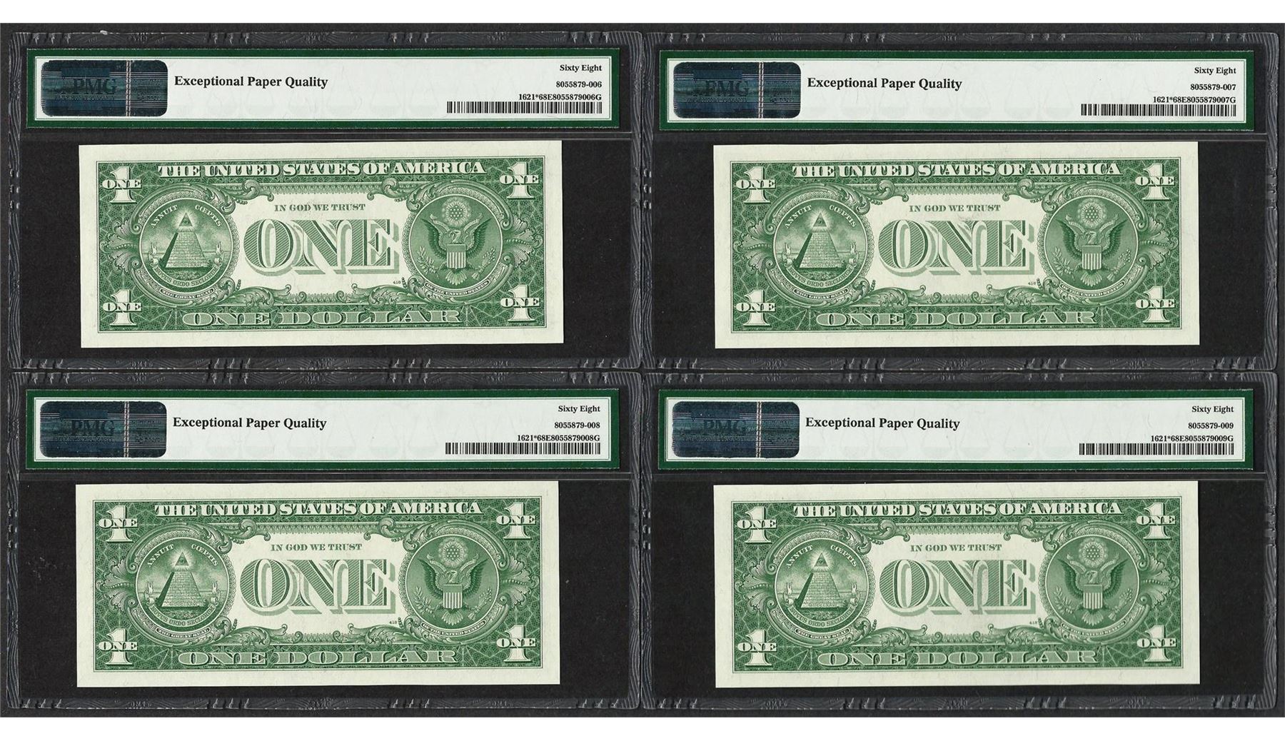 One (4) Consecutive 1957B $1 Silver Certificate STAR Notes PMG Superb Gem Unc. 68PPQ. PMG Certified.