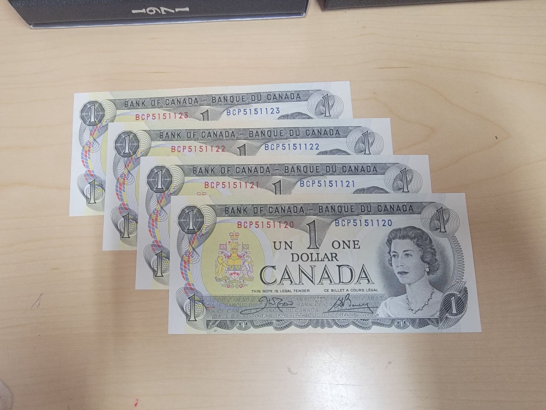 4 Consecutive 1973 Canada UNC banknotes; Crow/Bouey (#BCP 5151120-123)