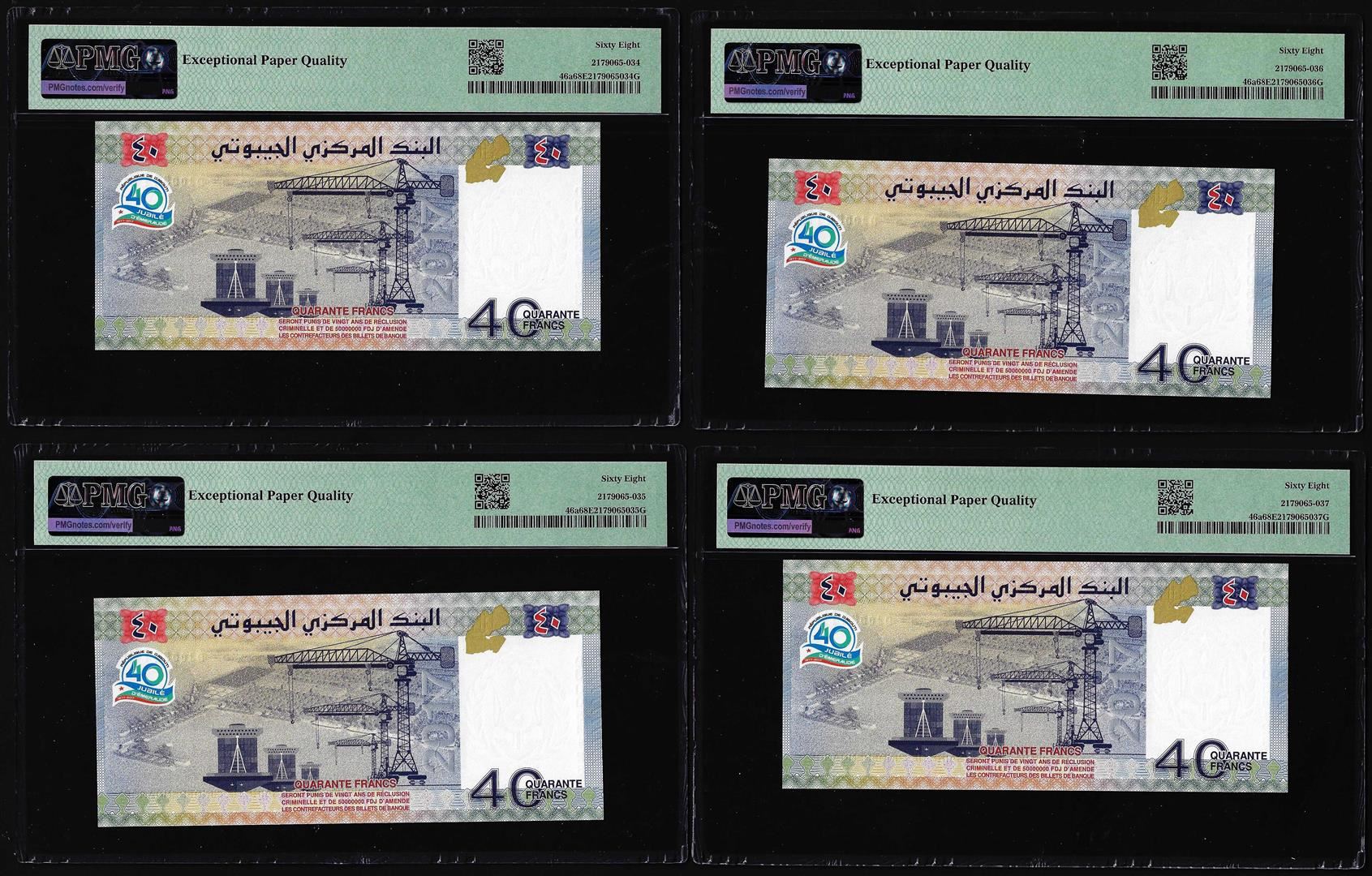 (4) Consecutive 2017 Djibouti 40 Francs Bank Notes PMG Superb Gem Uncirculated 68EPQ