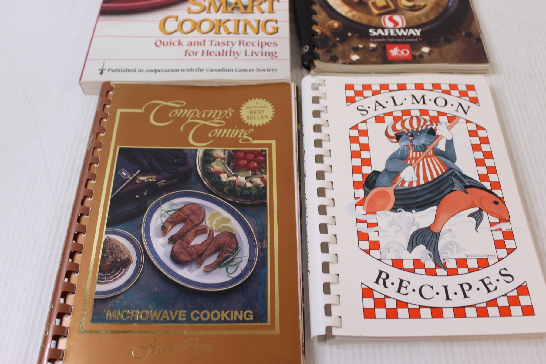 (4) Cookbooks: Company's Coming, Safeway, Smart Cooking, Salmon Recipes