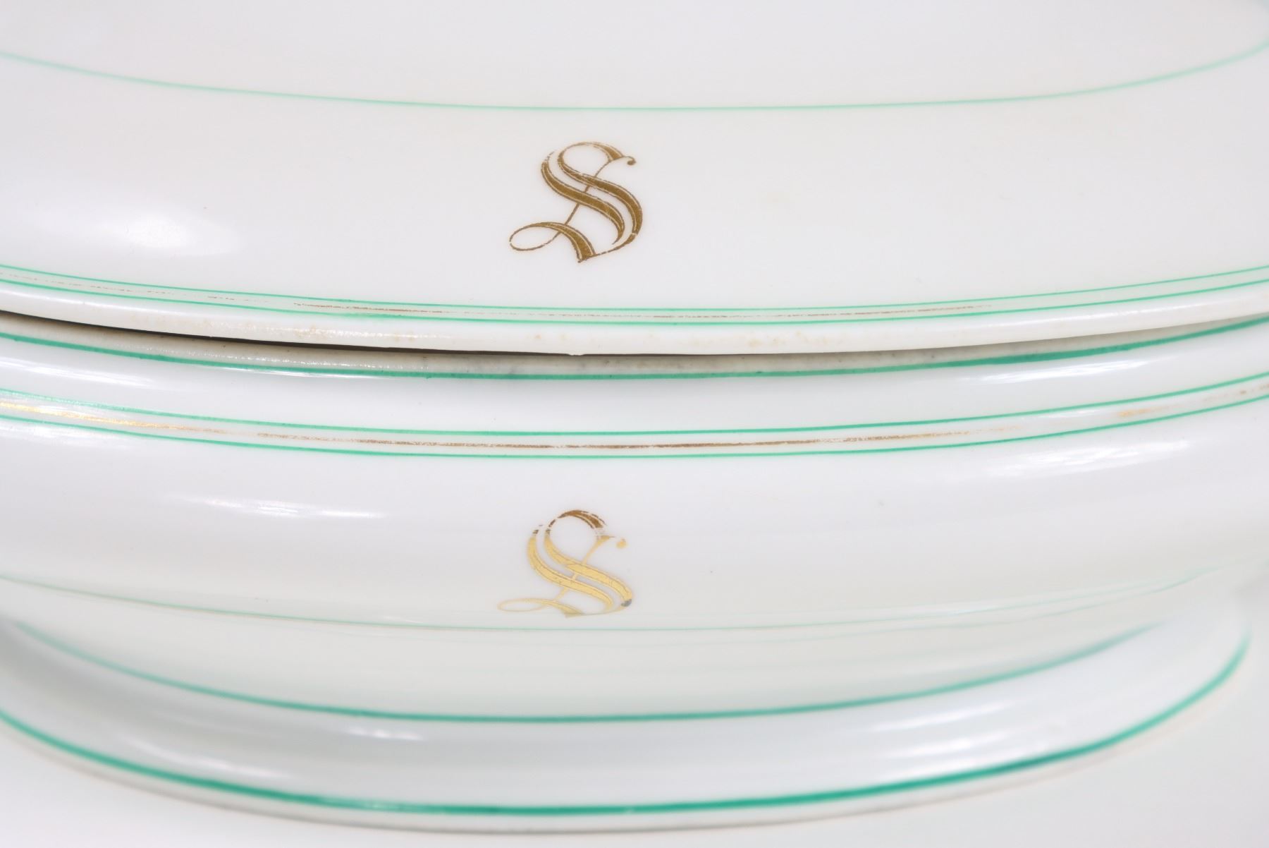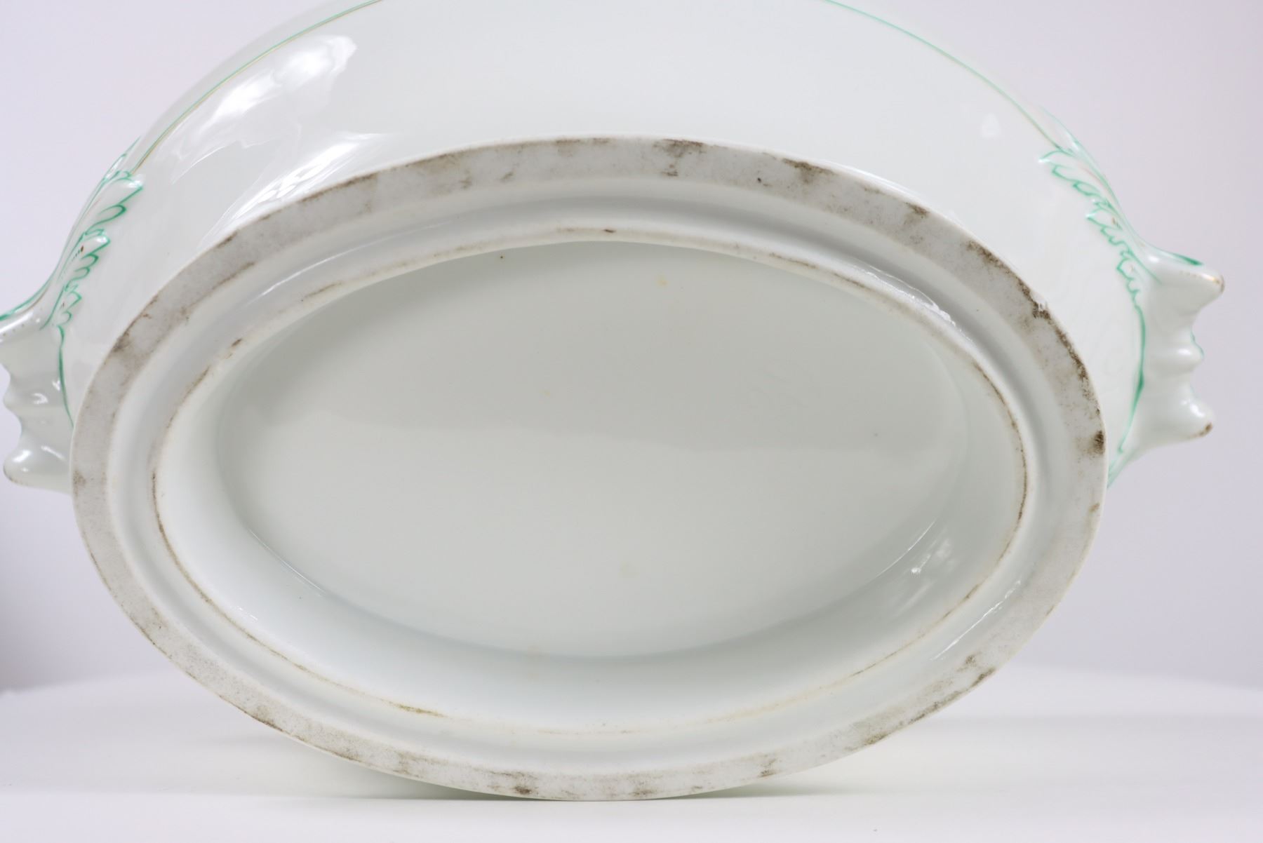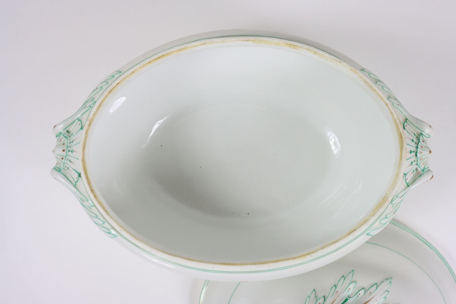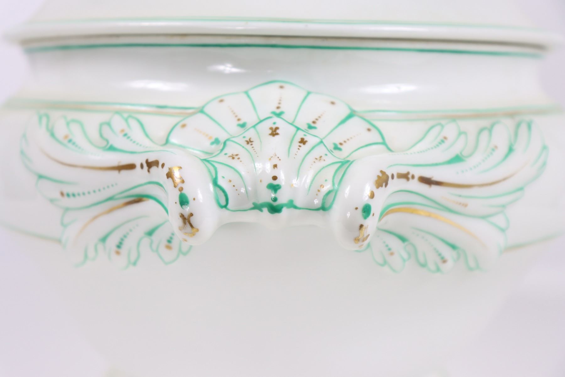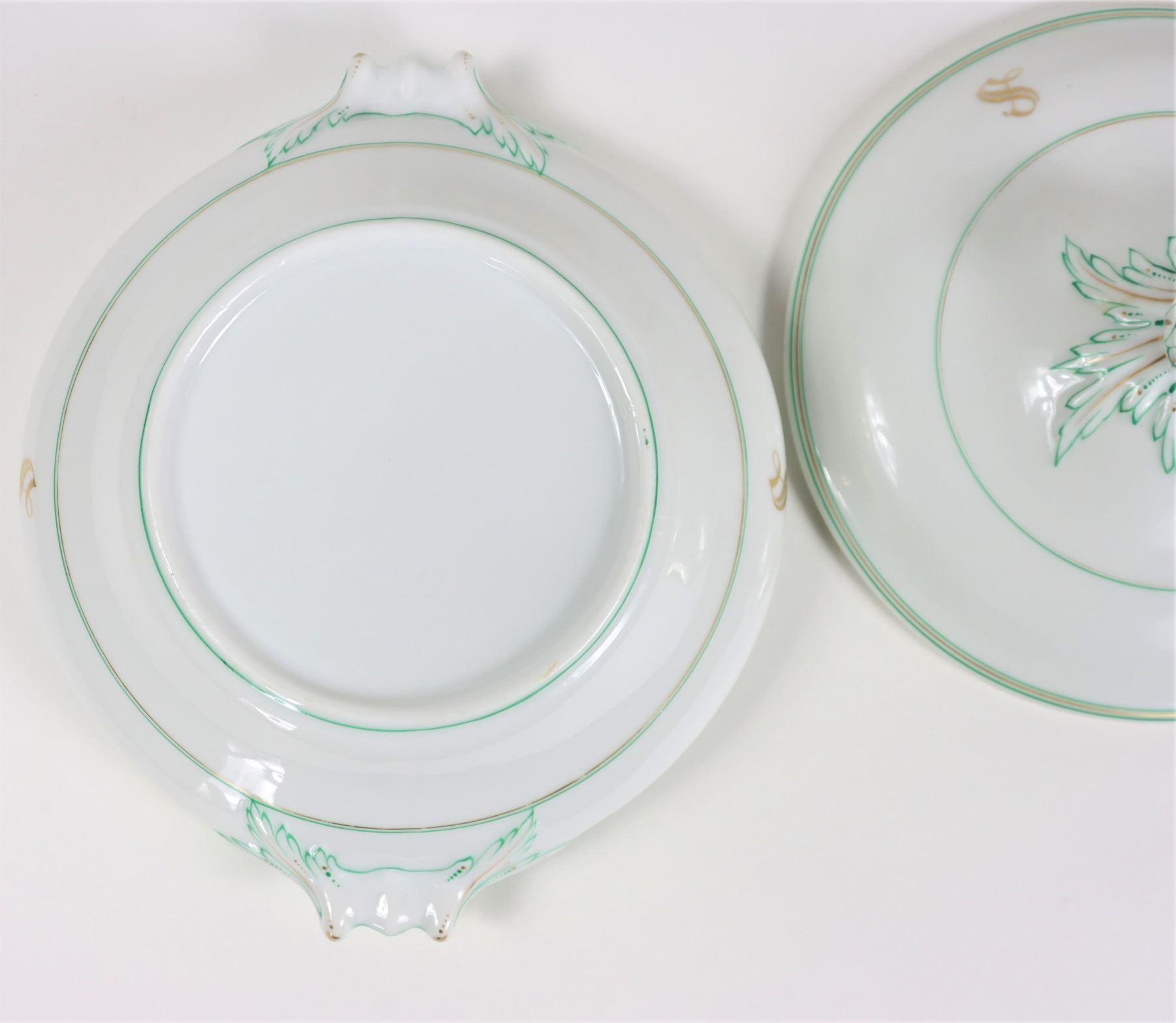 Group of (4) porcelain covered tureens with pinecone finials.