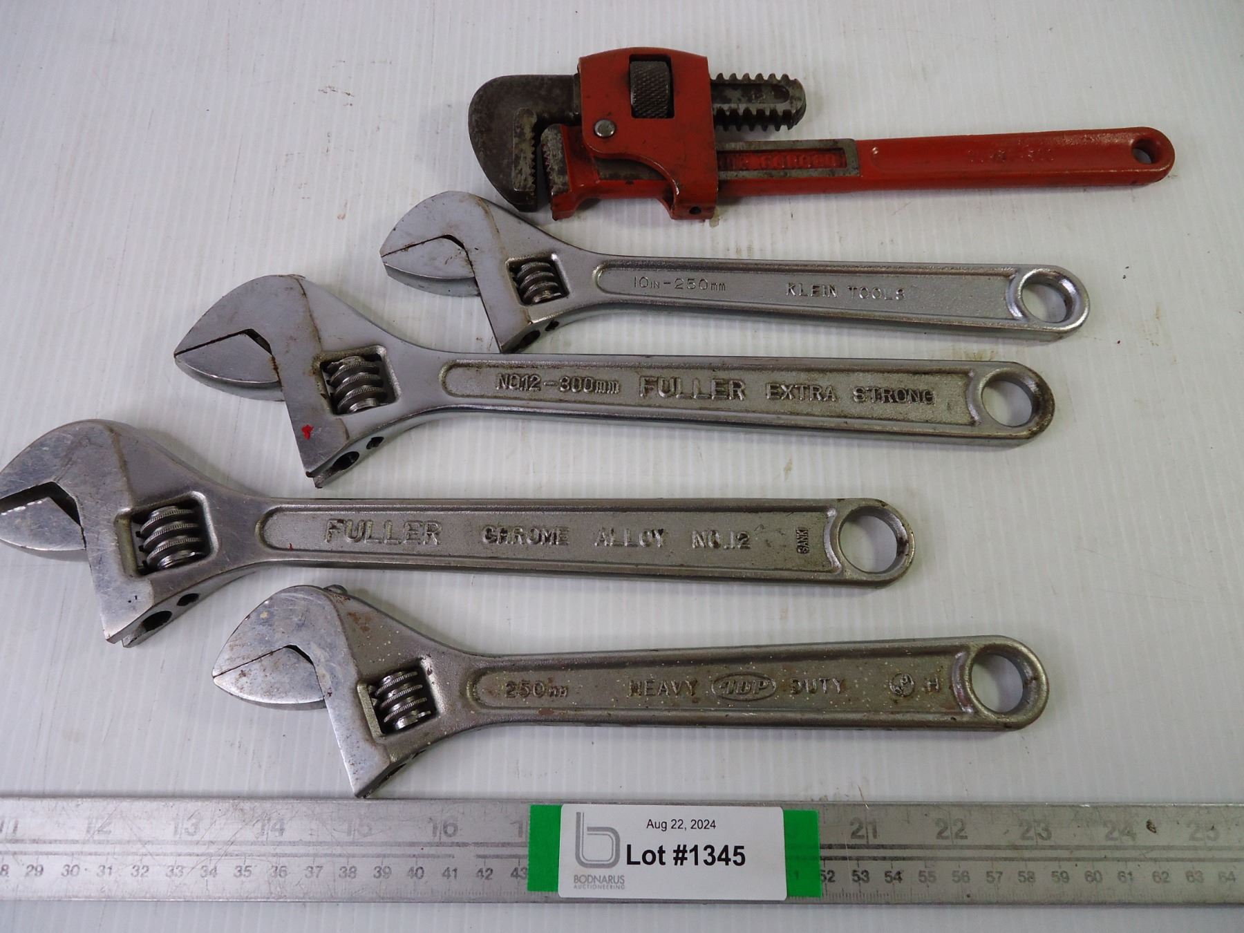 (4) Crescent Wrenches and (1) Pipe Wrench