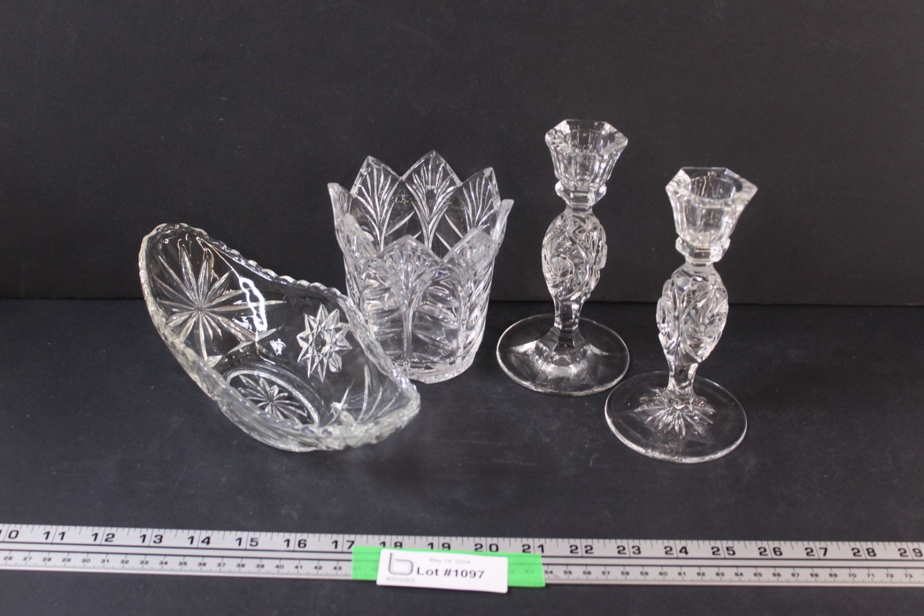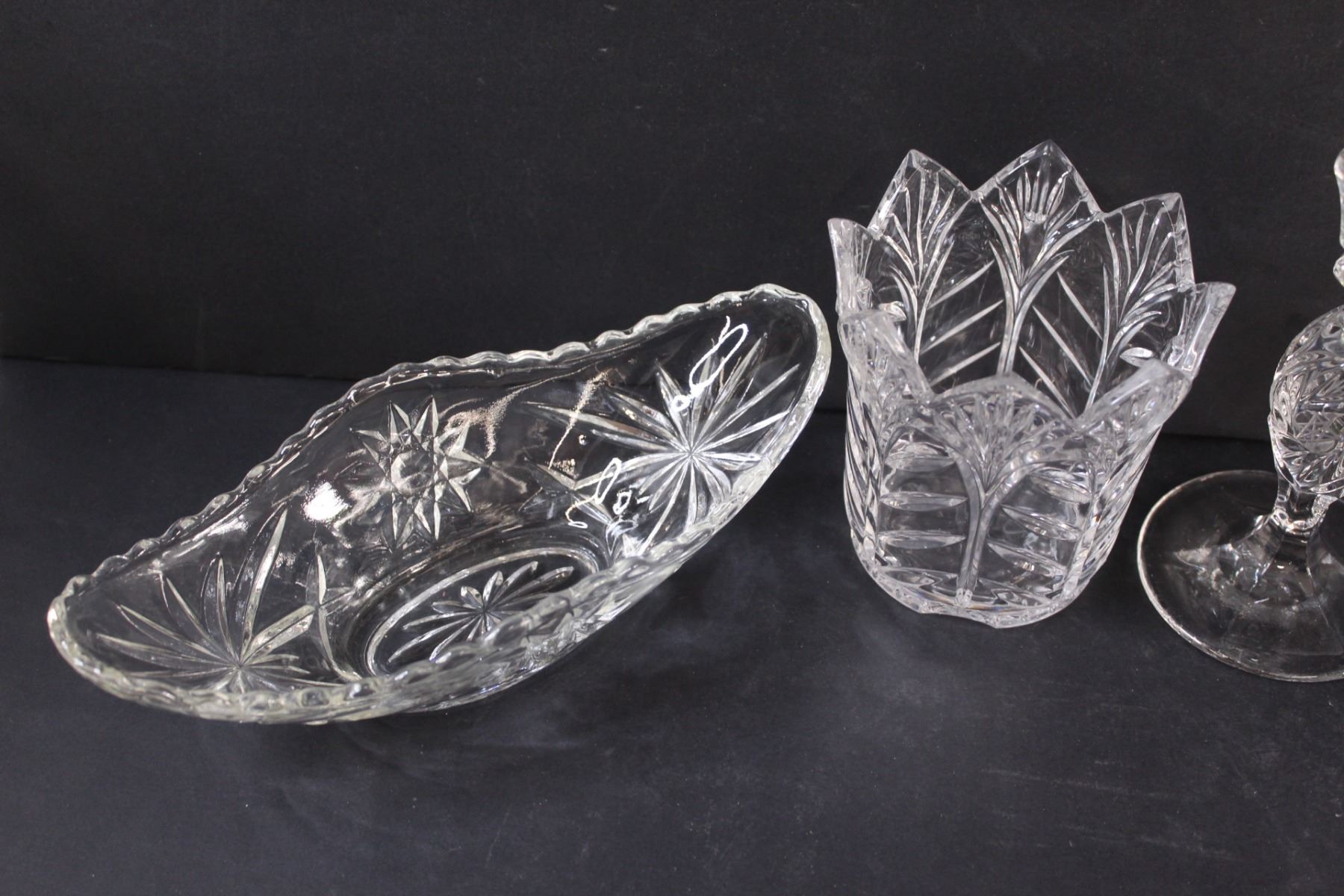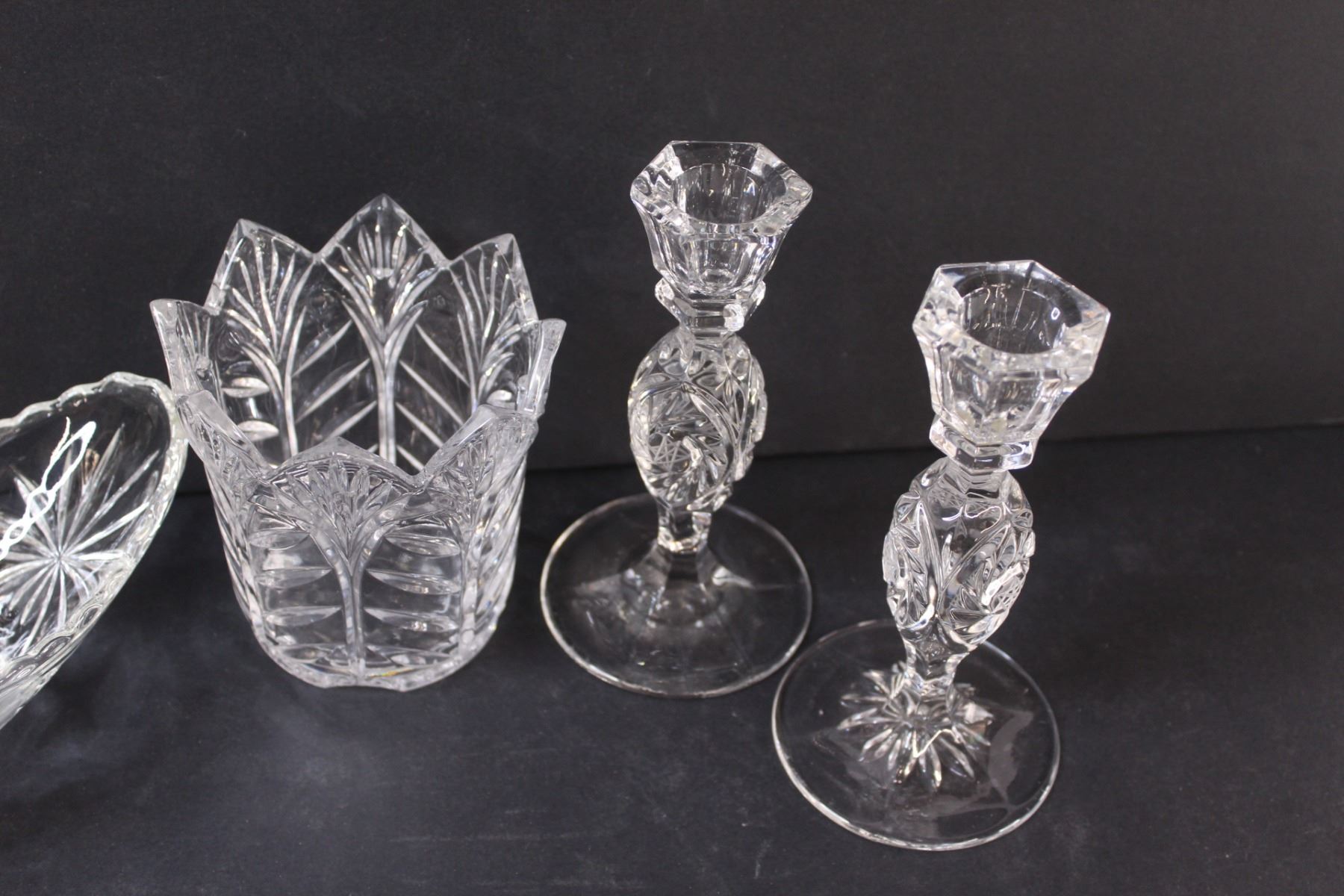(4) Crystal D'Arques Items: Large Spooner; Gondola Dish; 2 - Candle Sticks