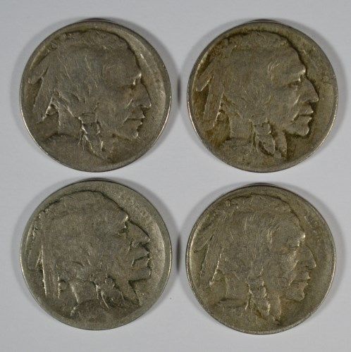 (4) DIFFERENT 1913 BUFFALO NICKELS ( 13 I, 13-DI, 13 I, 13 II)