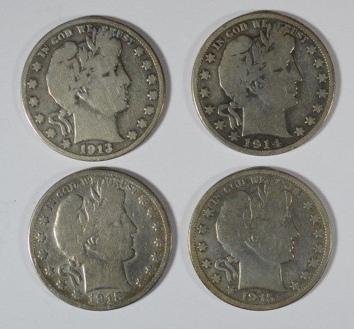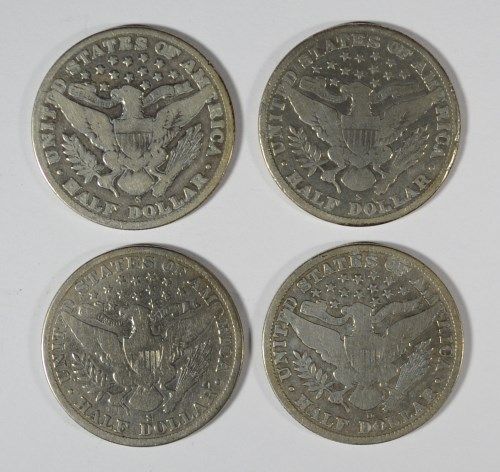 4- DIFFERENT BARBER HALF DOLLARS GOOD (13-S, 14-S, 15-D, 15-S)