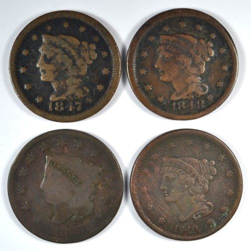 4 DIFFERENT LARGE CENTS (27,40,47,48) GOOD-VG