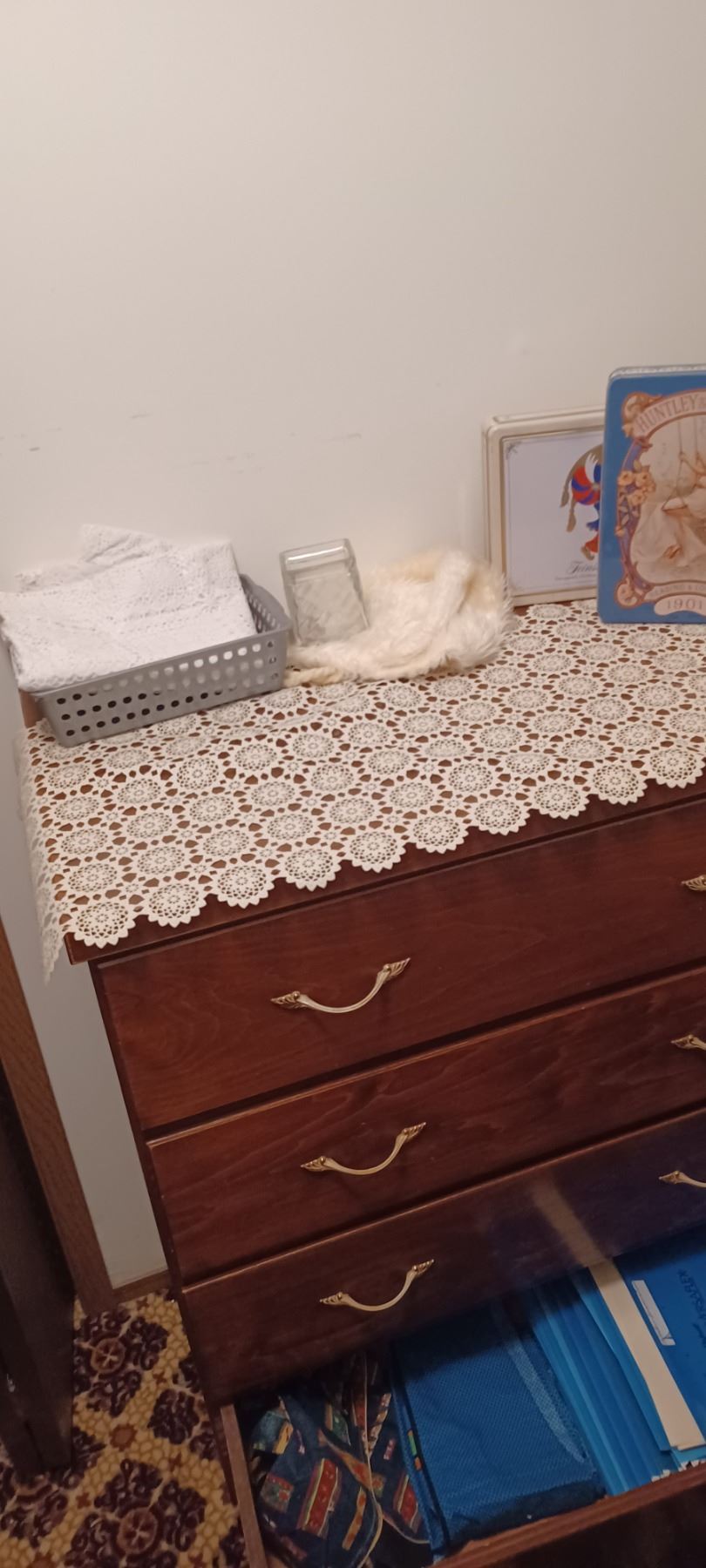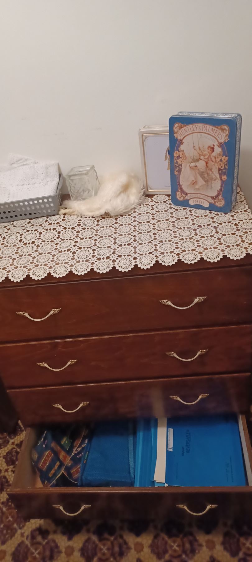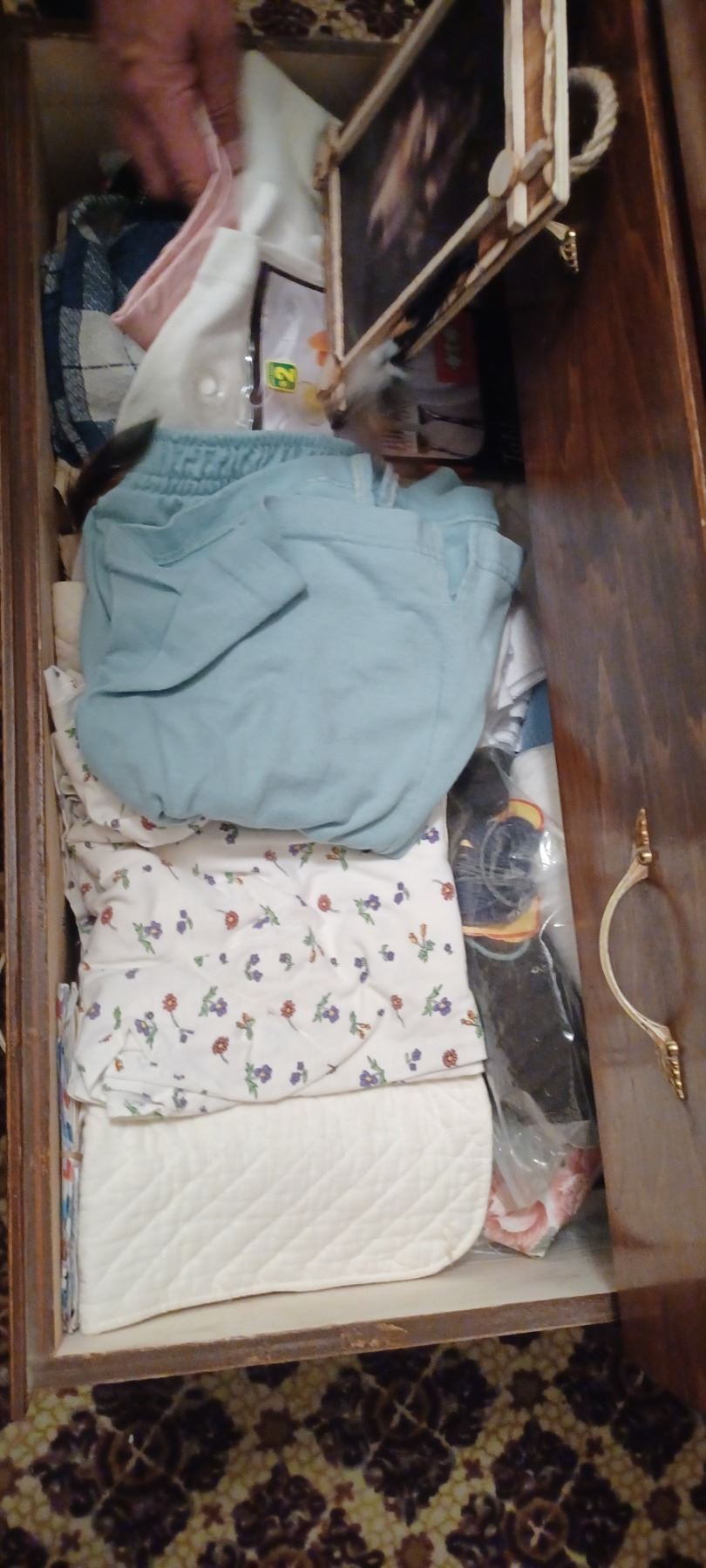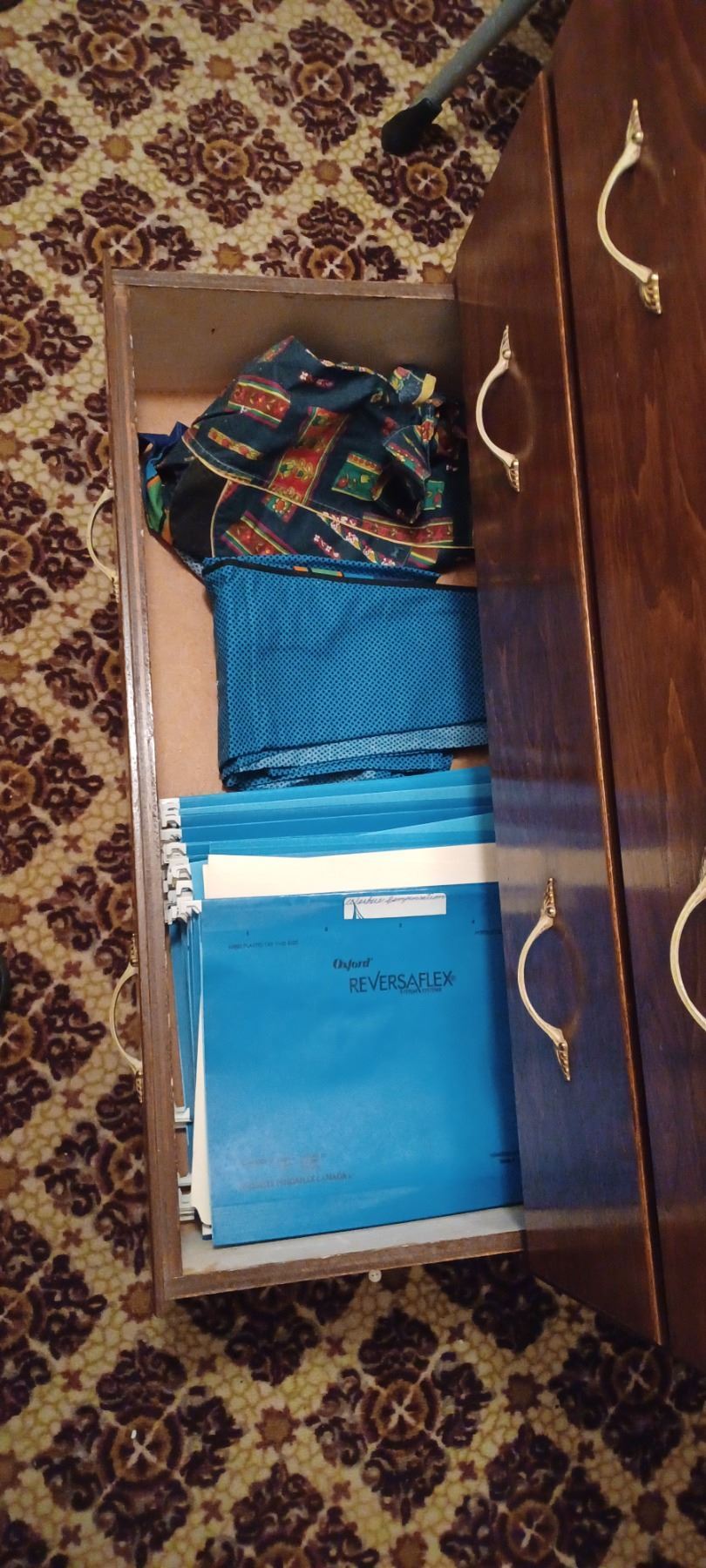 4-DRAWER 1/2" DK. WOOD DRESSER & ALL CONTENTS