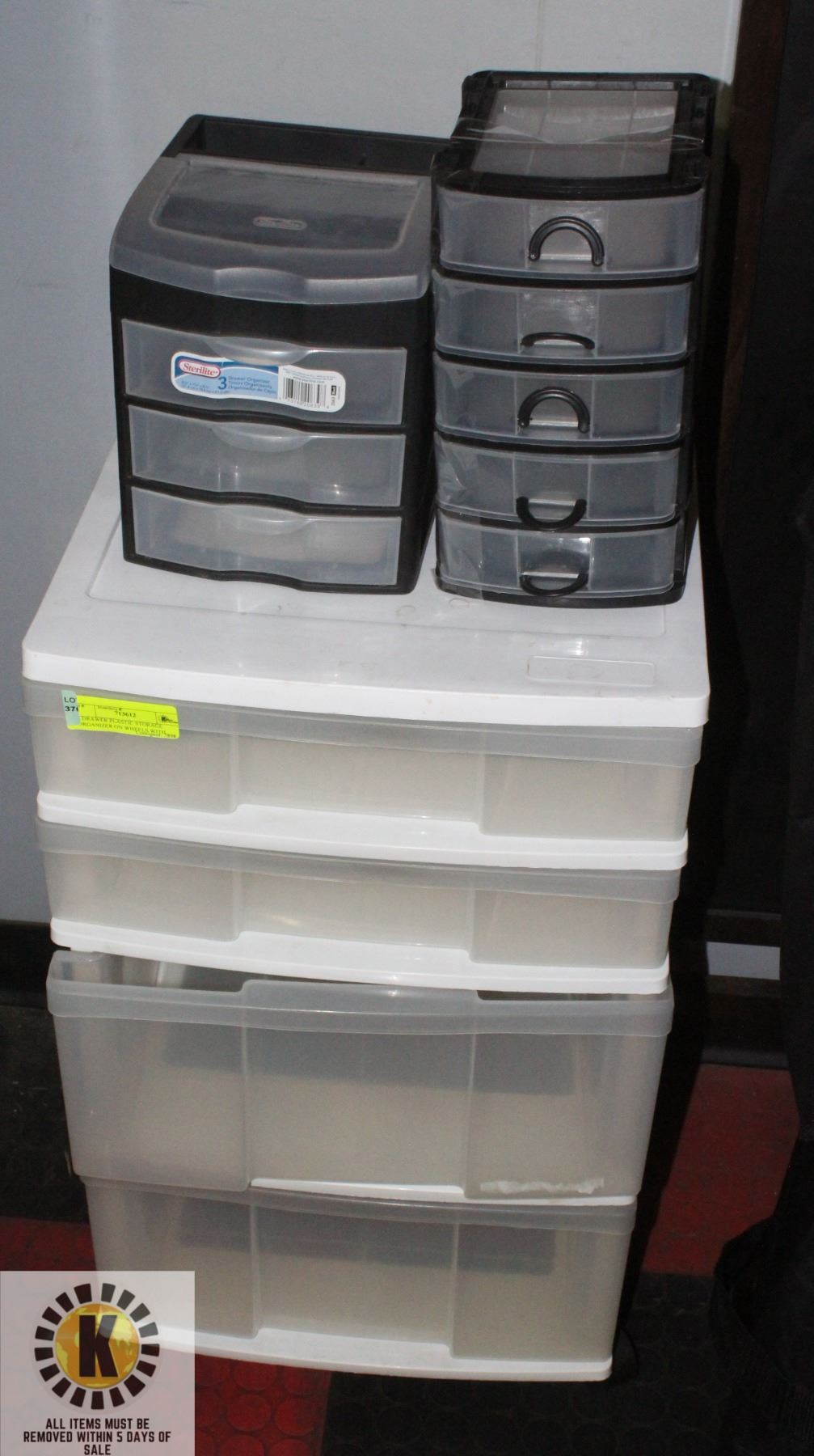TWO SMALL TABLE TOP SIZE PLASTIC STORAGE ORGANIZERS ALL ITEMS MUST BE REMOVED WITHIN 5 DAYS OF SALE