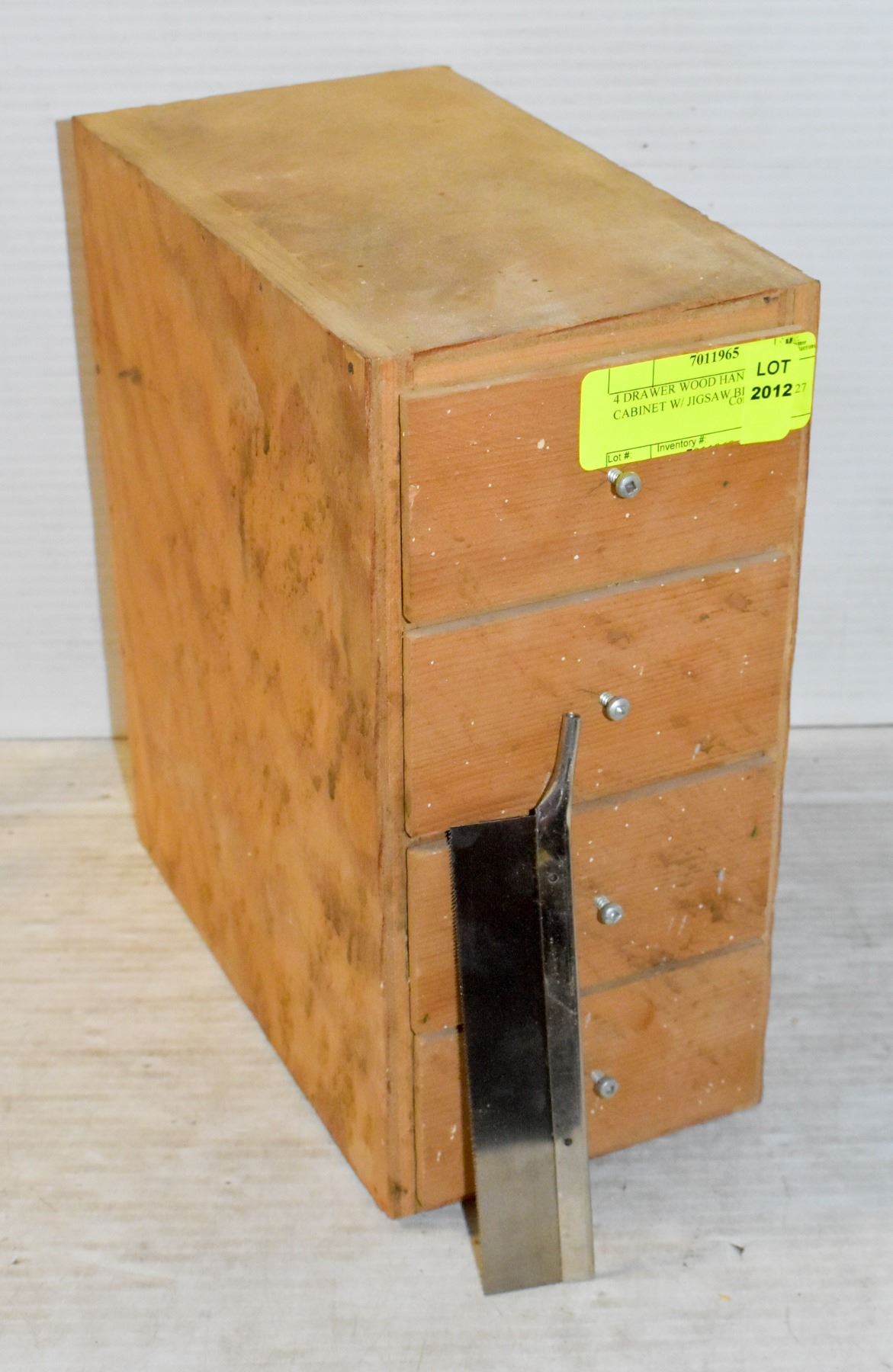 4 DRAWER WOOD HANDMADE CABINET W/ JIGSAW BLADES