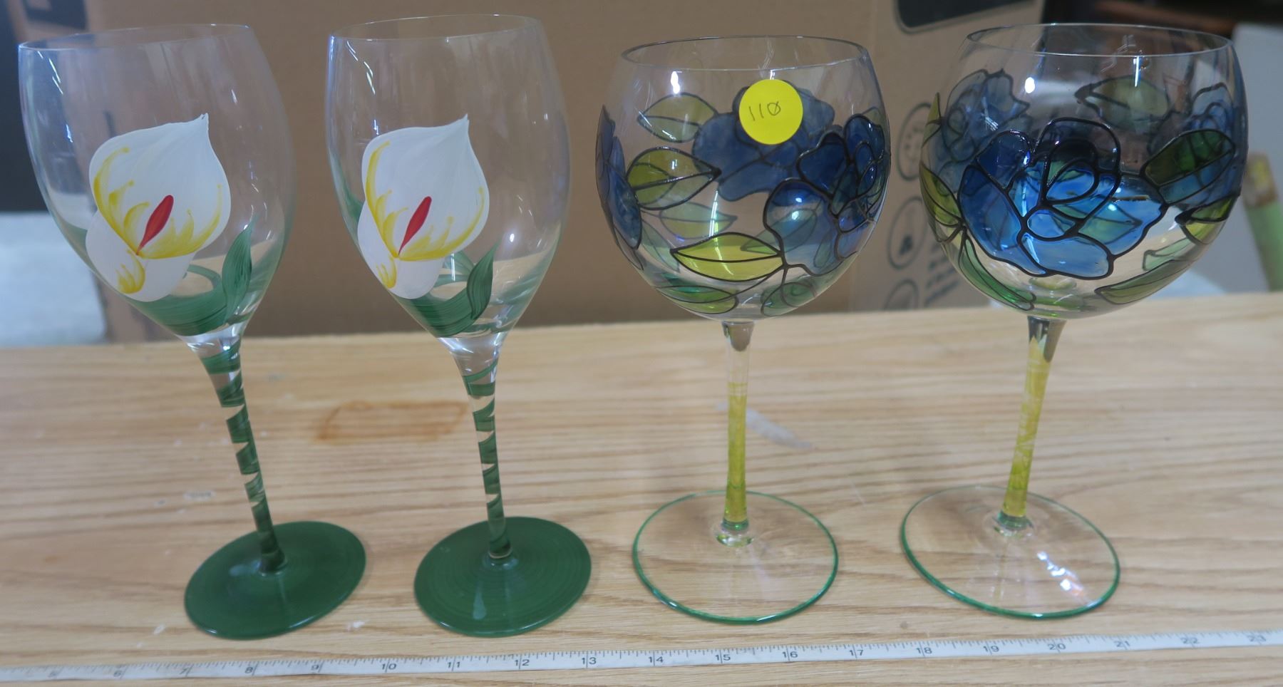 4 Decorated Wine Glasses