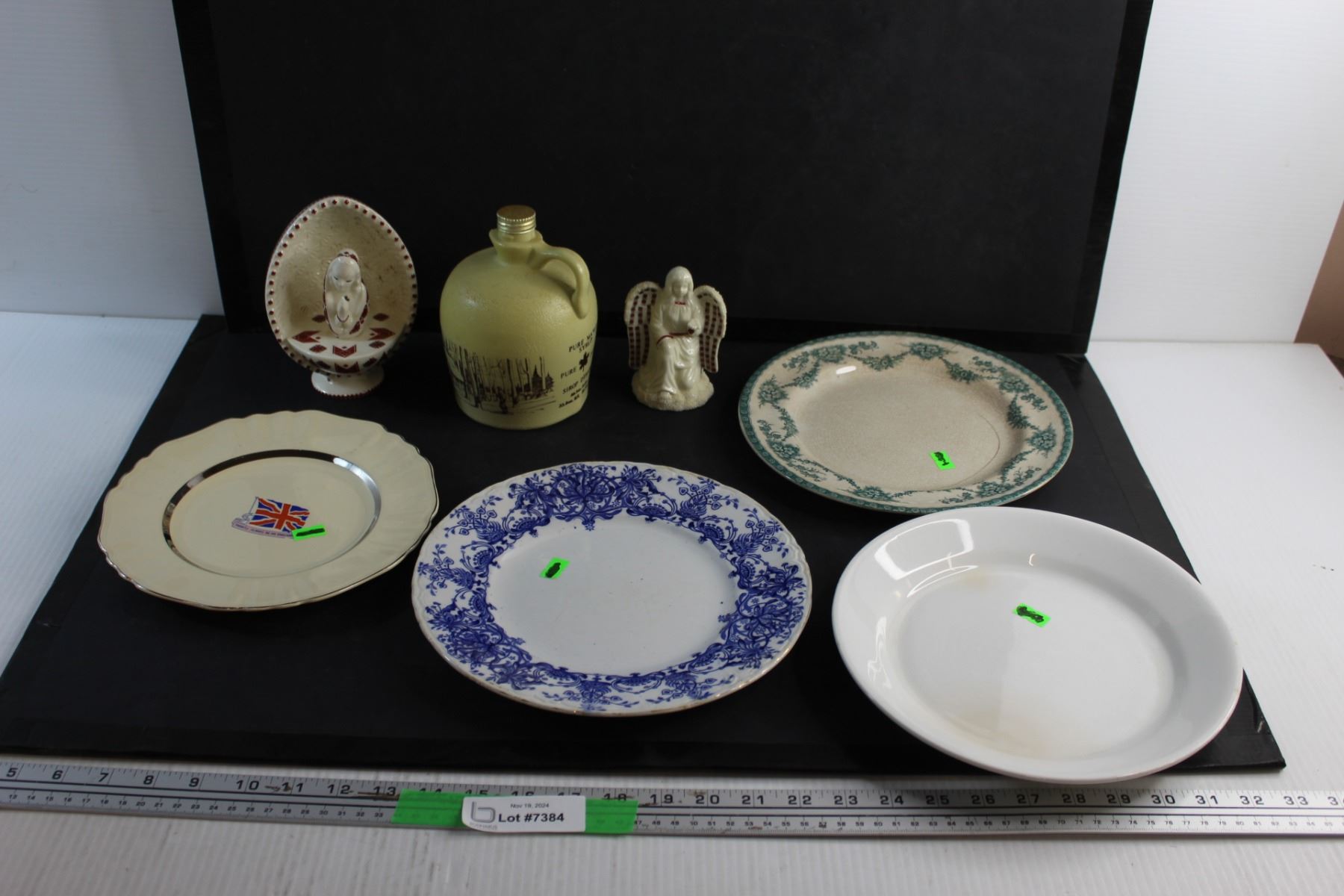 (4) Decorative Porcelain Plates, Maple Syrup Bottle and Angle Decor