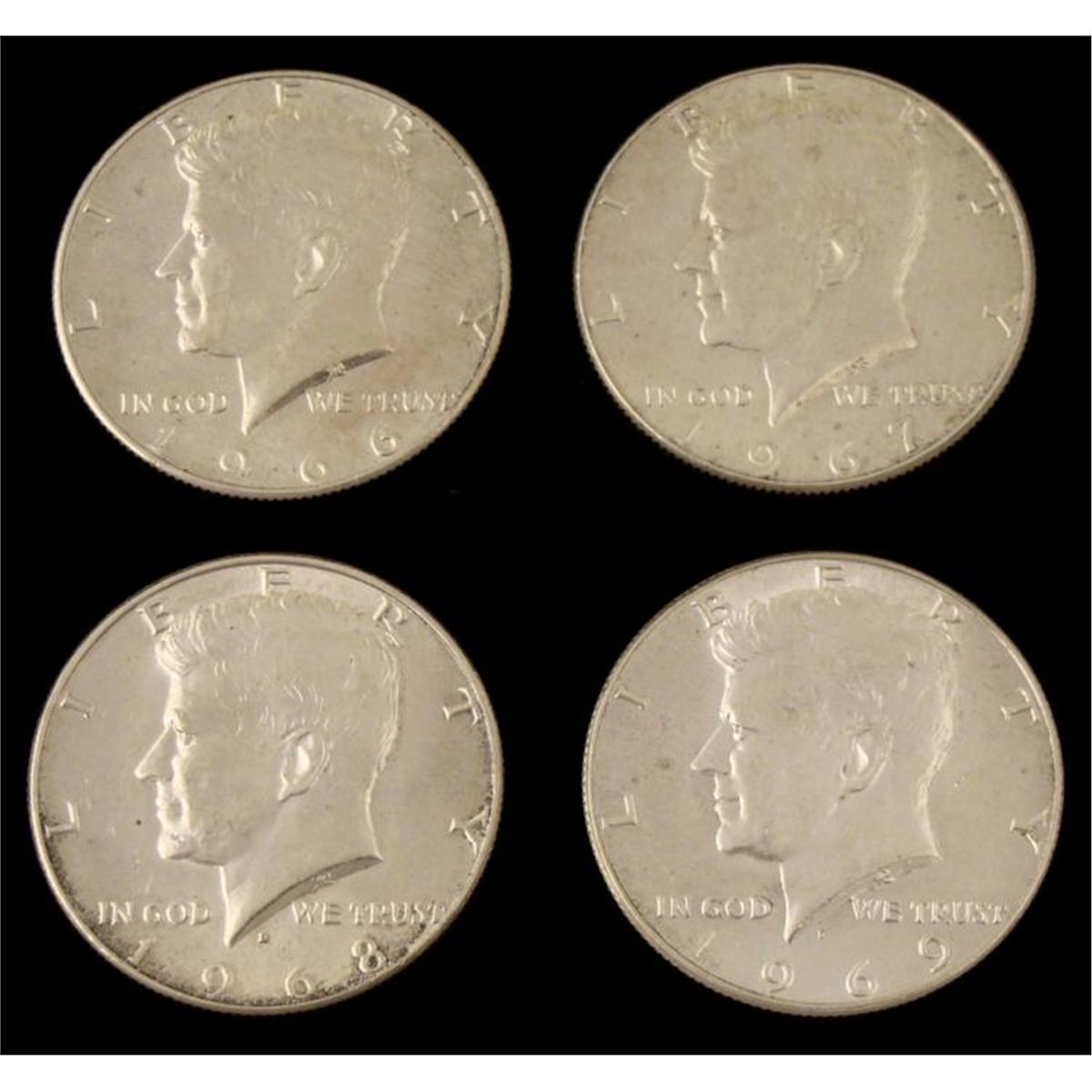 4 Different Date Kennedy Half Dollars * Condition: UncirculatedContent: 40% Silver Dates: 1966, 1967, 1968-D, 1969-D