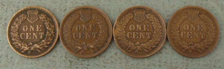 4 Diff Indian Cents High Grade FL 1881, 92, 1902, 06