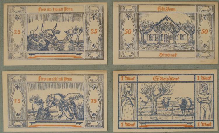 Set of 4 diff German Notgeld from 1921 * Denominations: 25, 50, 75 pfennig, 1 mark Condition: Uncirculated