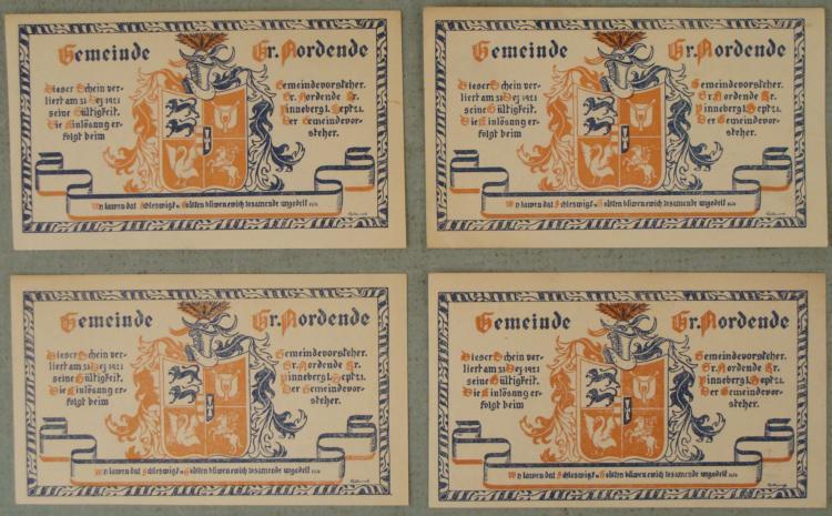 Set of 4 diff German Notgeld from 1921 * Denominations: 25, 50, 75 pfennig, 1 mark Condition: Uncirculated