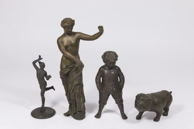 Including goddess, approx. 8" H; bulldog; small boy; and Mercury (gran tour).