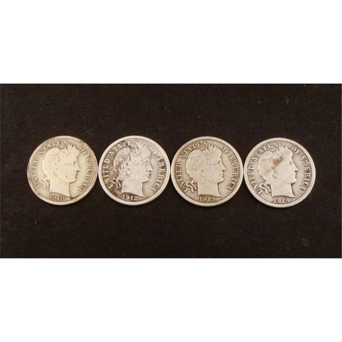 4 Different Date Barber Silver Dimes * Condition: Hi-Grade